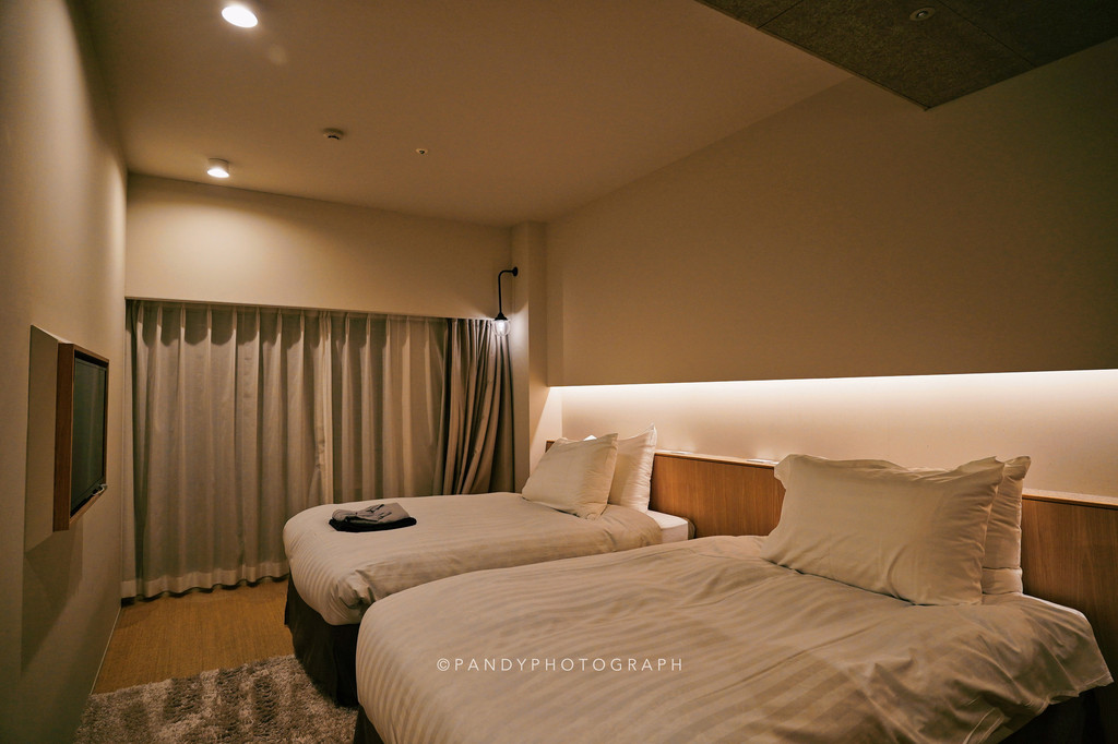 旅馆还推出了以佐贺当地才有的建材「貝灰漆喰」来装修的单人房。以有明海海边贝壳研磨制成的灰色涂料,搭配传统日式木造家具,打造出一种简约但不简单的美。另外这种涂料耐脏防潮无化学污染,很适合居住空间使用。也获得了2017年「GOOD DESIGN AWARD」的荣誉。
