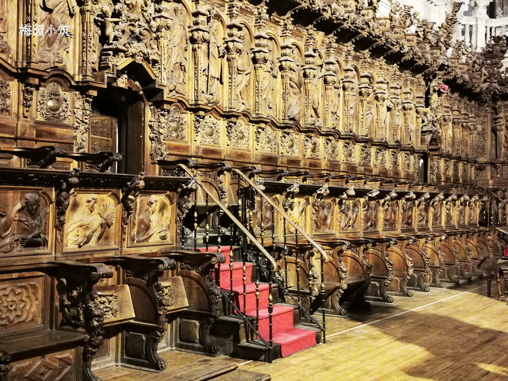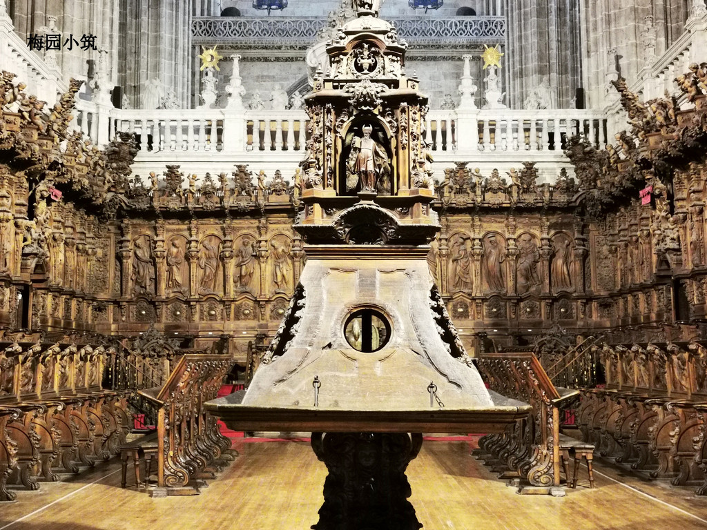 唱诗班坐席位于教堂主厅中央,分为上下两排,融合了哥特式和文艺复兴式风格。这种风格的结合不仅展现了不同时期的艺术特点,还体现了西班牙木雕艺术的高水平。上排坐席采用了文艺复兴风格,座椅上方雕刻有圣人像,展现了文艺复兴时期对人物形象的细腻刻画。而下排坐席则呈现哥特式风格,雕刻内容丰富,包括宗教场景和历史事件。下排坐席的雕刻主题包括1492年西班牙天主教君主击败阿拉伯人、进入格拉纳达市的场景,这些雕刻以凸雕的形式呈现,生动展现了当时的历史事件。