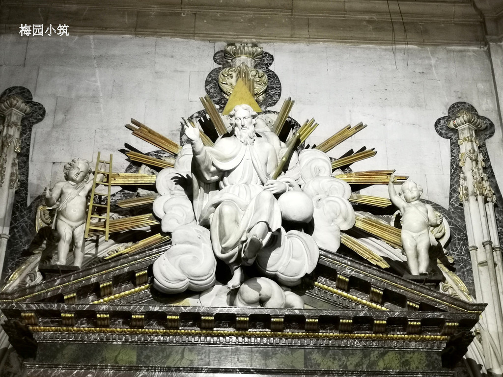 新大教堂内部有一个高达80米的穹顶,穹顶下是教堂的主祭坛,整体气势恢宏,给人以震撼的视觉效果。穹顶的设计融合了哥特式和巴洛克风格,是晚期哥特式建筑的典范。其高耸的结构和精美的装饰展现了建筑艺术的卓越成就。穹顶内部装饰华丽,采用了丰富的几何图案和雕刻,营造出一种庄严肃穆的氛围。