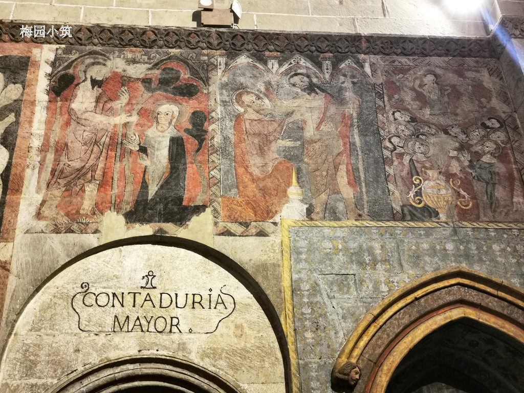 祭坛画上方有一幅《最后的审判》壁画,描绘了世界末日时基督审判世人的场景,祭坛画中还包含了多位圣徒的形象,以及圣母玛丽亚的多个重要场景。祭坛画的边框和装饰部分采用了精美的雕刻和镀金工艺,进一步增强了其视觉效果。这些祭坛画不仅是宗教艺术的杰作,还反映了15世纪西班牙与意大利艺术交流的成果。它们是旧大教堂内部装饰的重要组成部分,
