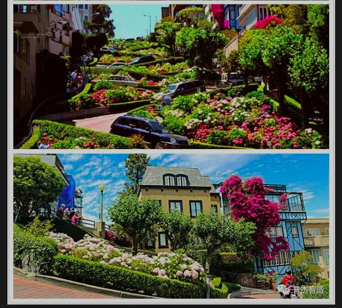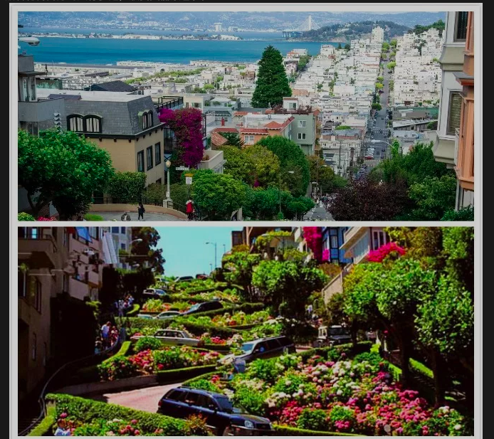 纽约 洛杉矶 芝加哥 巴黎 海牙等 甚至最整洁 最规矩的伦敦ChinaTown 都只能称作街;三藩市就不通了,真的是一个Town,完整的镶嵌在旧金山的DownTown中央,无论是从中央车站穿过最知名的Lombard九曲花街,(在Hyde街与Leavenworth街之间的一个很短的街区,却有八个急转弯,因为有40度的斜坡,且弯曲像“Z”字形,所以车子只能往下单行。街道上遍植花木,春天的繍球,夏天的玫瑰和秋天的菊花,把它点缀的花团锦簇。还可远眺海湾大桥和科伊特塔,如不开车,可顺着花街两旁的人行步道,欣赏美丽景色。)