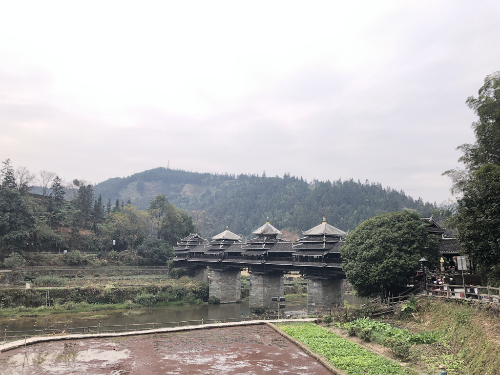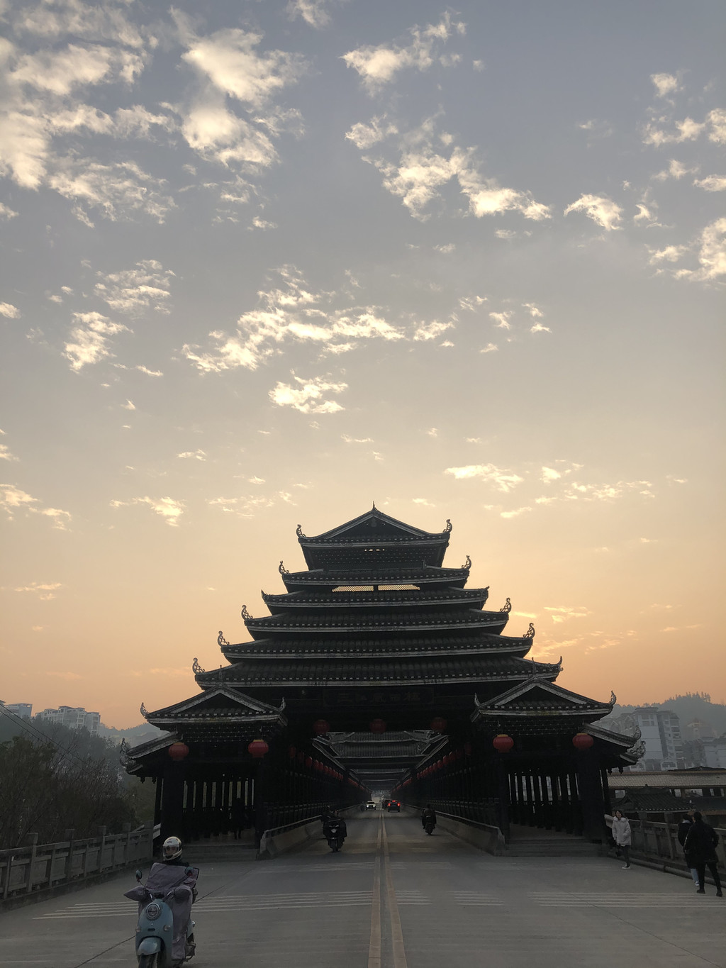 进入冬季,山区早晚温差特别大,三江县的清晨,格外的冷。导游给我们介绍了这座古桥,有100多年的历史,上门没有使用一颗钉子,全部都是木头镶入式的操作,看着这座古桥,让我感叹道古代侗族人民伟大而代表着智慧的结晶。