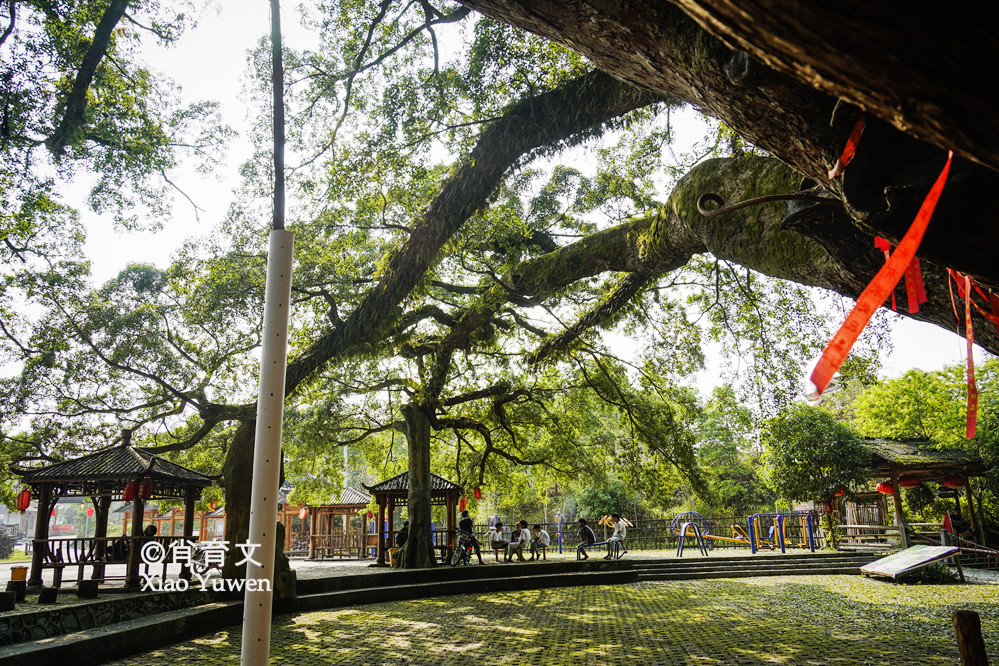 一进产口古榕景区就看到了一颗迄今1300年的巨大榕树,作为柳州最大的侗王神树,是侗族人初一十五祈福纳财许愿的地方,迷信的善男信女们兴冲冲地跑去合影留念。