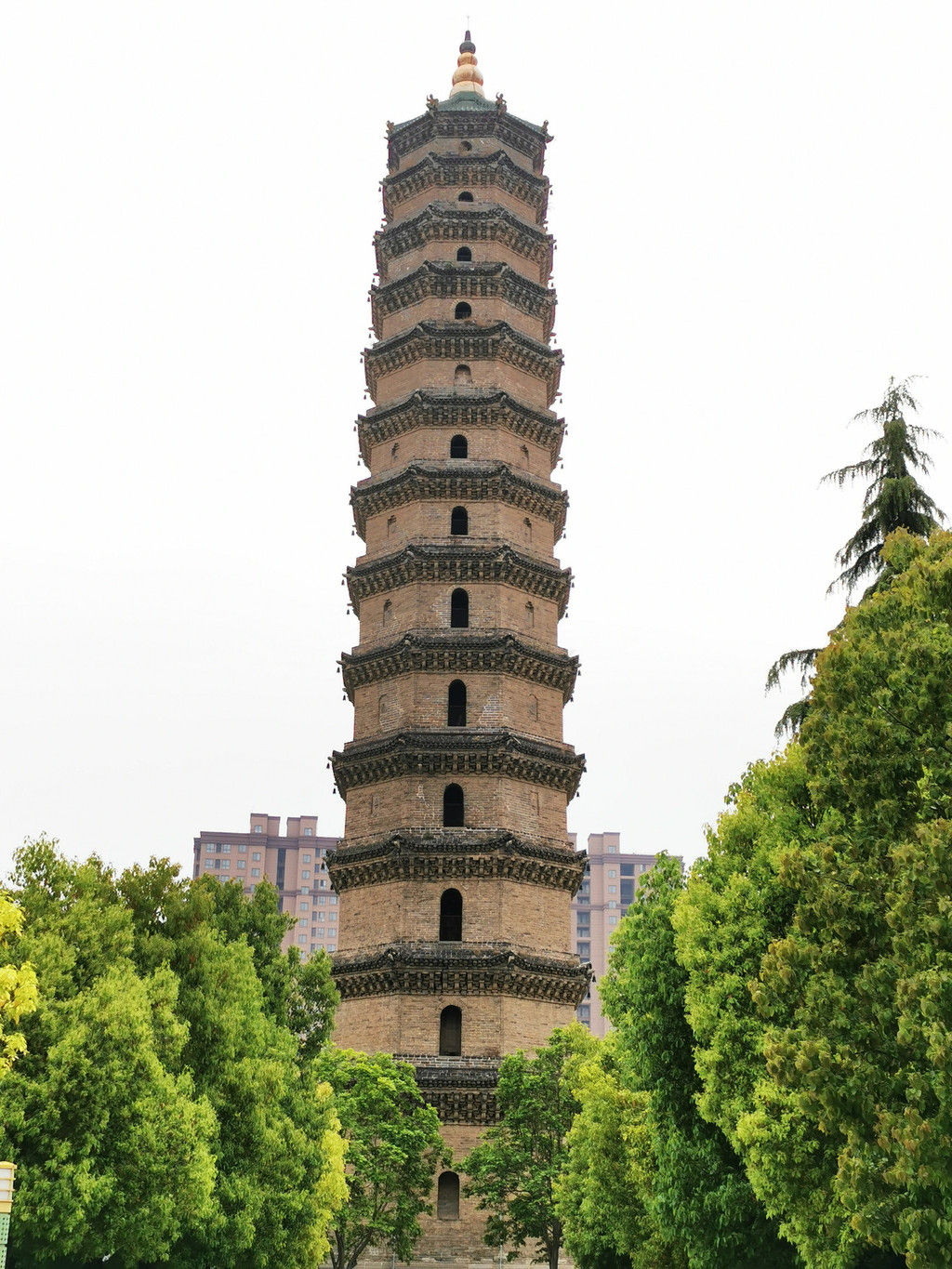 塔通高51.3米,呈平面八角形,十三层楼阁式砖塔,由地宫、基座、塔身、塔刹组成。结构严谨,气势雄伟,为河南省200多座明代砖塔之冠。1