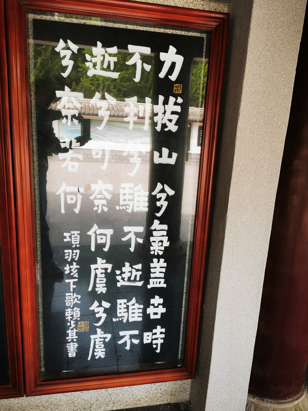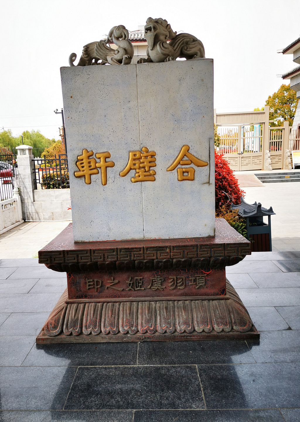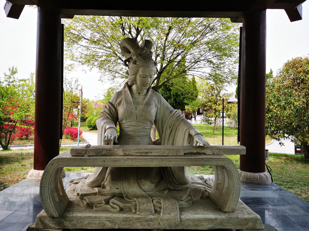 虞姬文化园园外设施简洁,环境安静优雅。走进园内,楼台亭榭,古朴典雅,秦砖汉瓦,飞檐斗拱,金联耀眼,楚风汉韵,扑面而来。