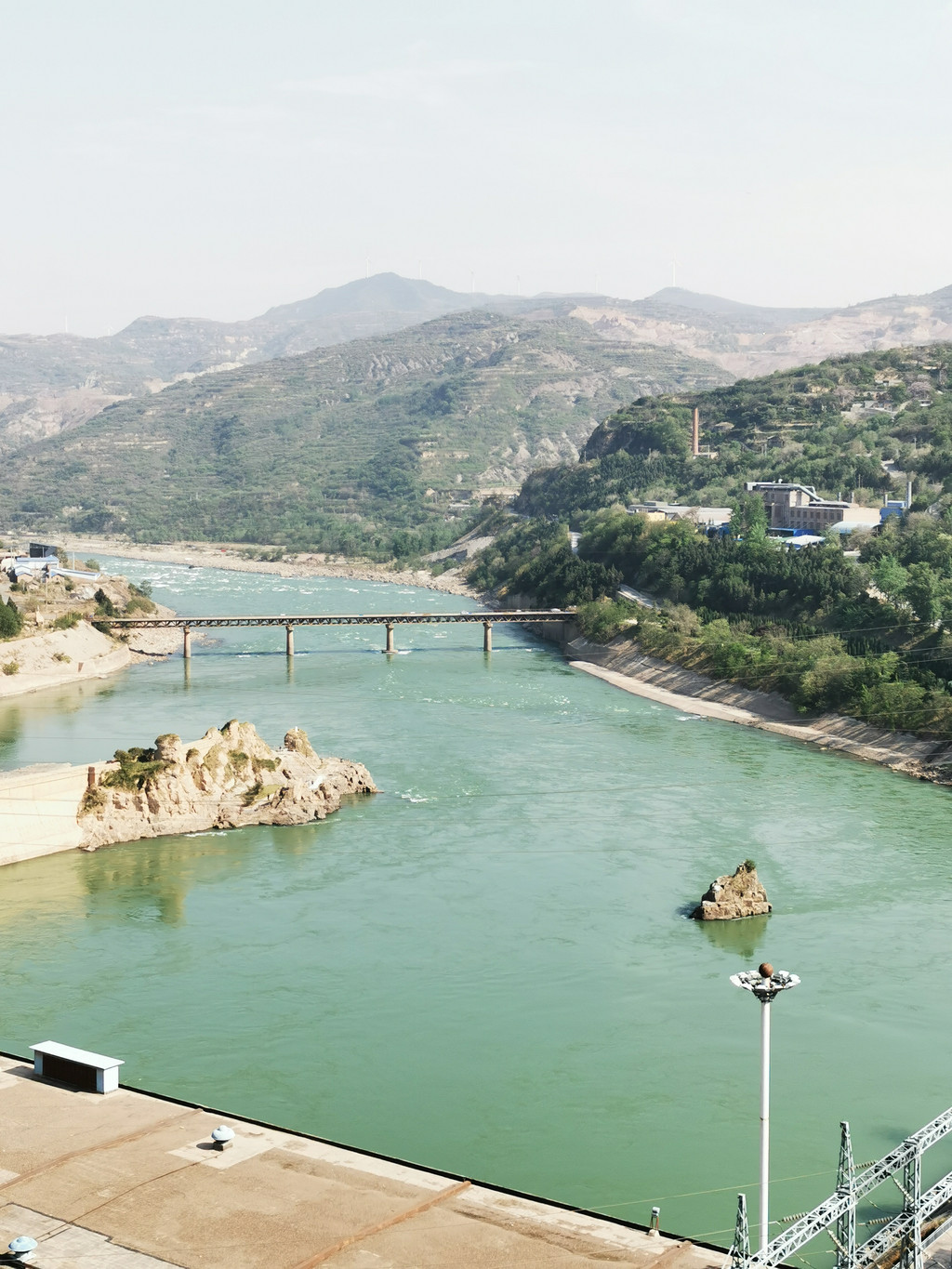 从9:30一直到下午3点来到三门峡大坝。路上已开始有隧道,从海拔50米到海拔765米。一路上还是大车很多,这边的高速限速100。