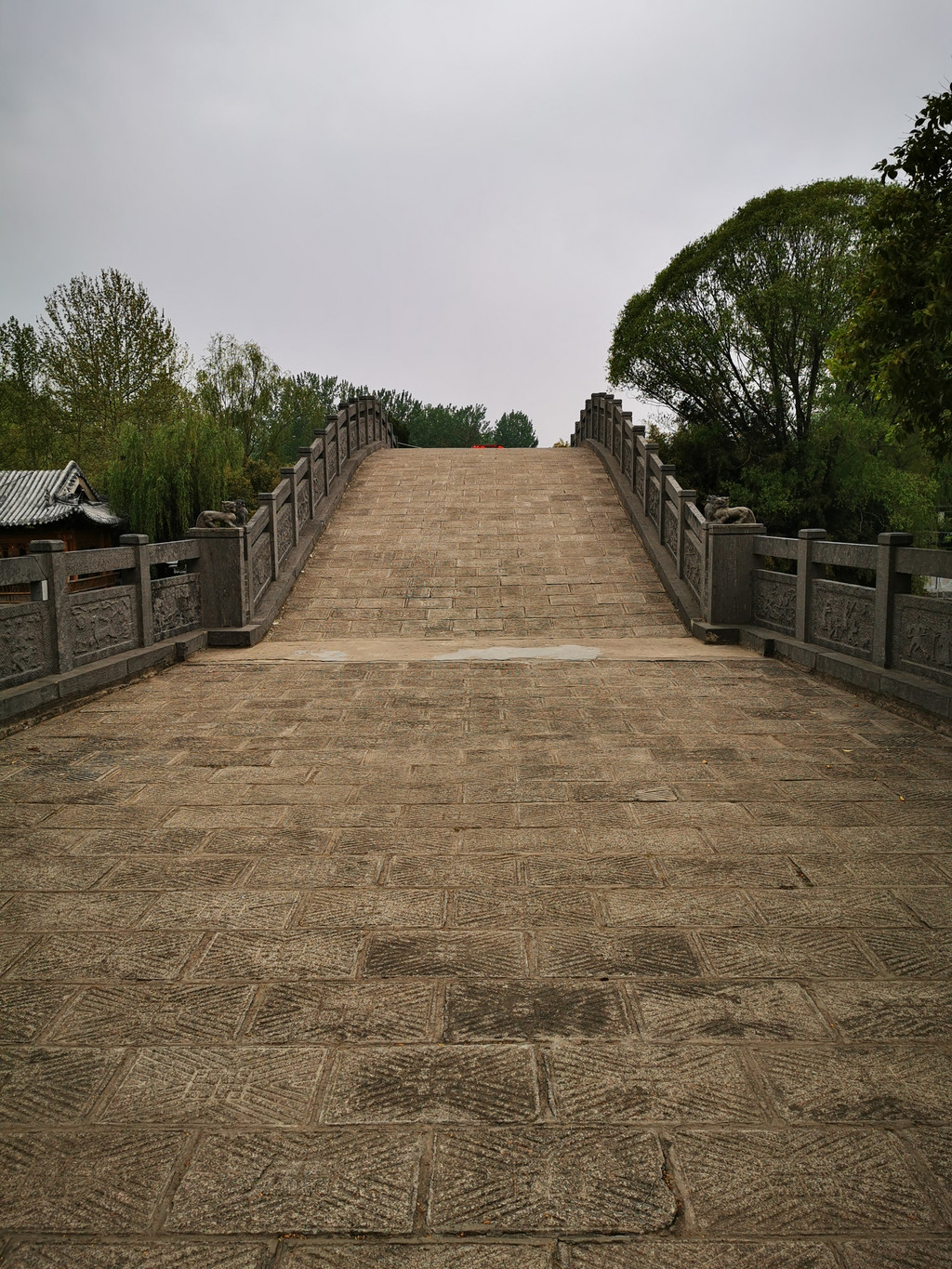 原桥高于水面3米余,为三孔青石桥。桥面宽能并行两车,桥长90米,两岸杨柳成行,风景宜人,桥旁有《汉关帝挑袍处》石碑,为明末将领左良玉所立。