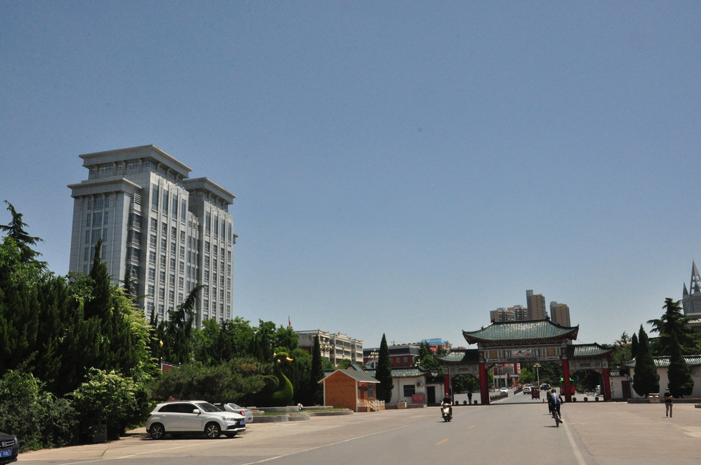 第二天5月18日,早晨7点在酒店吃过早餐,当天的行程安排是先去陕州地坑院,酒店门外不远就有专线车。可是吃饭前在房间发生一个小意外,我的眼镜不小心掉在地上,一下摔成两半,镜片坏了一支。这次有点出师不利,第一任务就要出门修眼镜。网上查了一下,显示附近有两个眼镜店,赶快过去,一一查看,竟然一个没有,都是建材店。经询问路人,告诉往北过桥不远有一个小学,附近肯定有眼镜店,有道理。我们步行几百米过去,果然看到眼镜店,可眼镜店只订做,不修理,配镜片要等几天之后,尤其是我的眼镜需打眼维修,一般店是无法处理,这下出了难题,如果没有眼镜,这次旅行恐怕要早早夭折了。