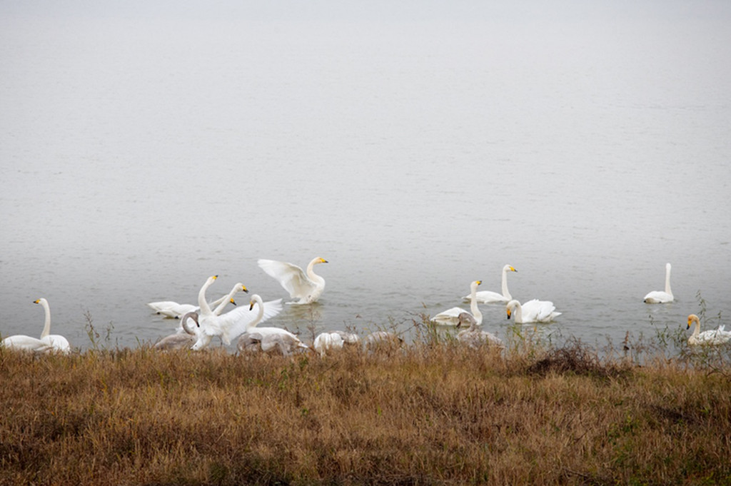 眼前这些来自遥远西北利亚的白色天使。它们之所以每年如期来到三门峡越冬,是因为这里山川秀丽,湖面广阔,水肥草美,食物充足。它们在当地市民和市政府以及爱鸟人士的精心呵护下,来这里越冬的大天鹅也把人类当成了朋友,成就了人与鸟和谐相处的难得景观。 使得三门峡因此有了“天鹅城”的美誉,如今,三门峡湿地公园已成为众多摄影爱好者的心之神往之地。
