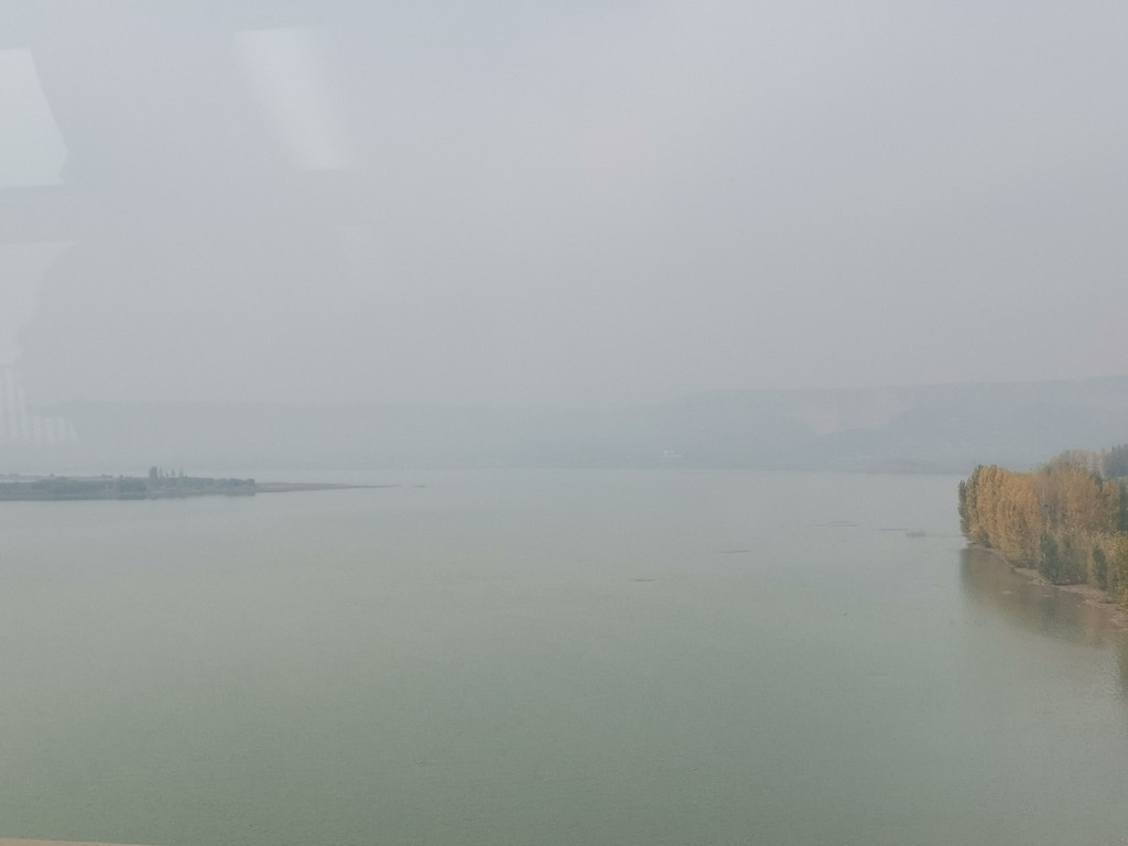 这是经过黄河大桥看到三门峡水库烟波浩瀚的景象。
