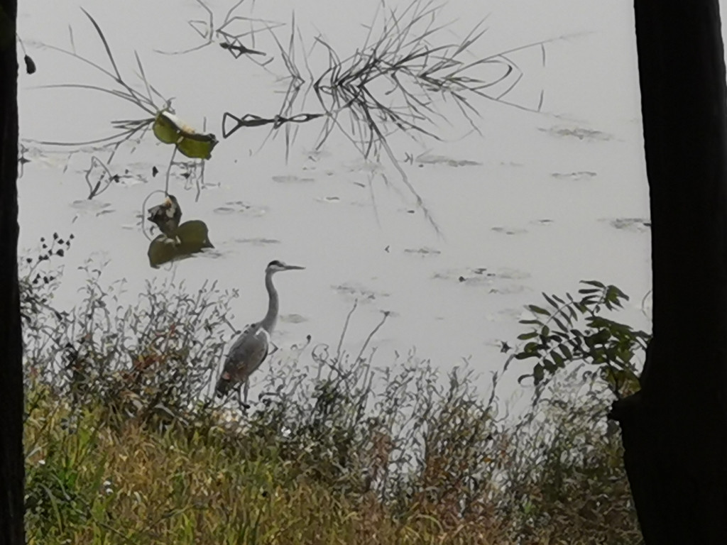 眼前的景象告诉我们,湖面上没有成群结队的大天鹅,可能来的还不是时候。对此,我们多少就有点惆怅,但不管怎样,既来之,则游之。我们沿着公园的观鸟路继续前行,看到了几只体型硕大的苍鹭和成双的鸳鸯,跟踪它们拍一拍,也算找到了一点“打鸟”的感觉。