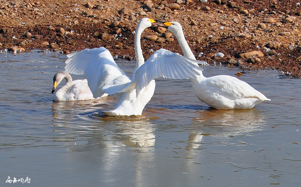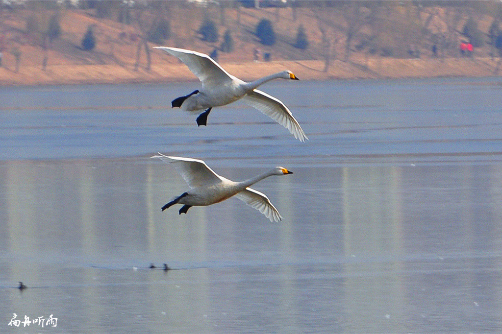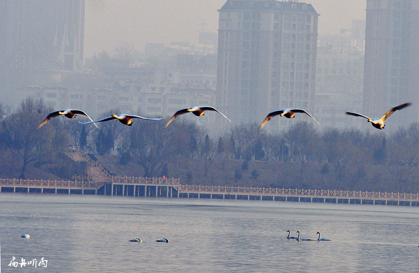 三门峡人民给天鹅嘘寒问暖,保驾护航,四面八方的游人慕名而来。一个冬季里,天鹅都是三门峡这块土地上最丰盛的谈资,天鹅都是三门峡人民生活中不可缺少的伙伴,天鹅都是有人眼中和镜头里最美丽的模特。三门峡因此而被昵称为天鹅城,城西连着水库的湖面被昵称为天鹅湖。天鹅,已经是三门峡这个城市冬季里不折不扣的主角。