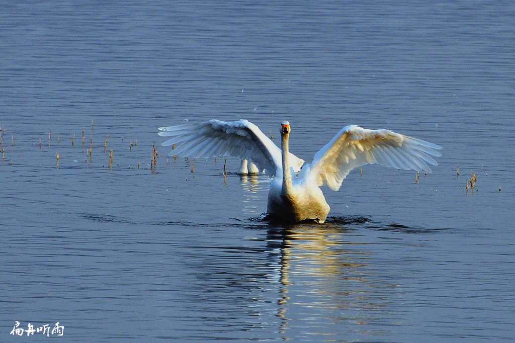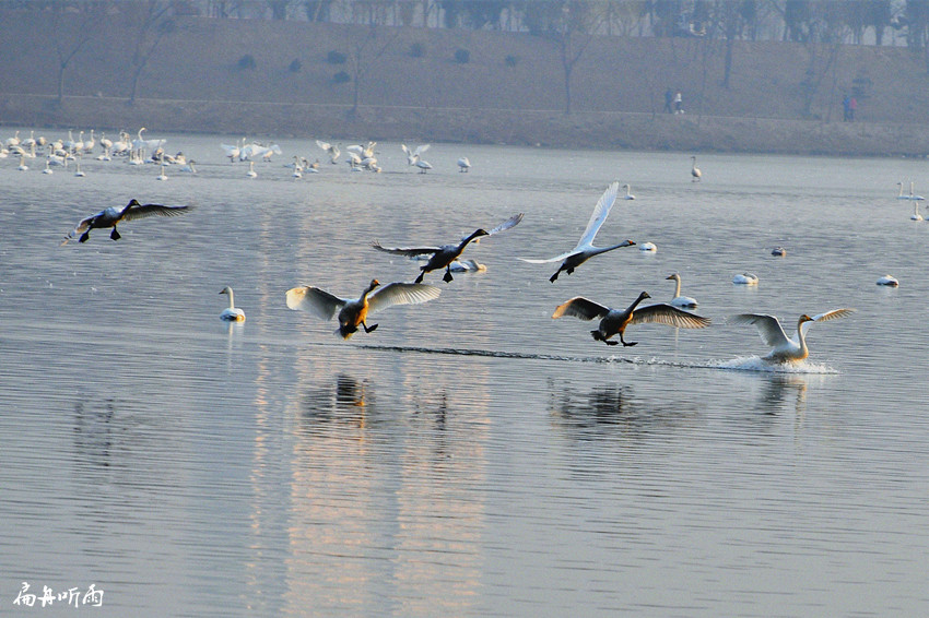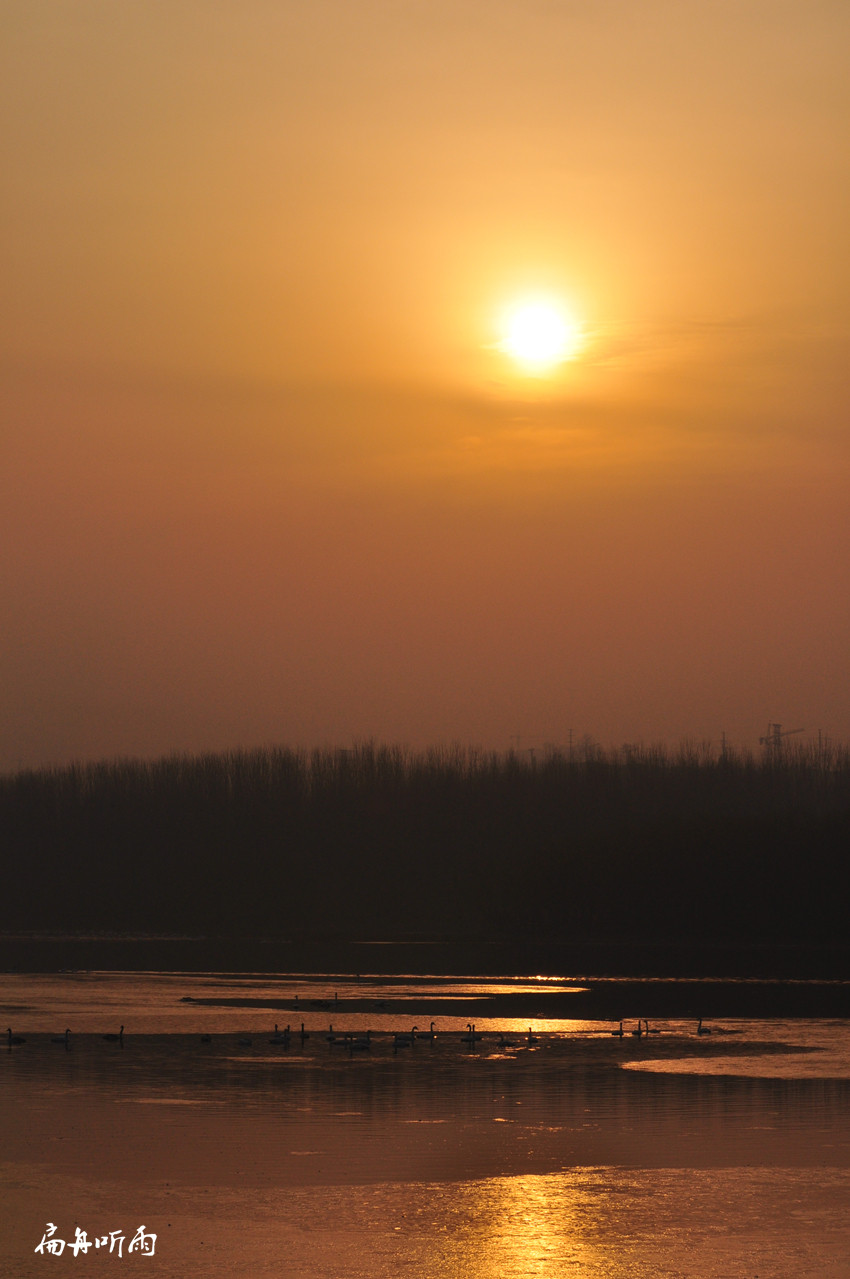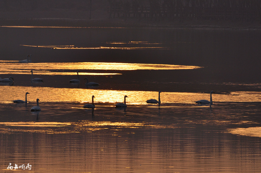 新的一天里,一轮红日喷薄而出,朝霞映满天际,天鹅湖金光灿灿。在天鹅的世界里,这里是如此的鲜艳,这里是如此的安全,这里是如此的友善。三门峡,就是温暖的家园,这里就是生活的乐园。