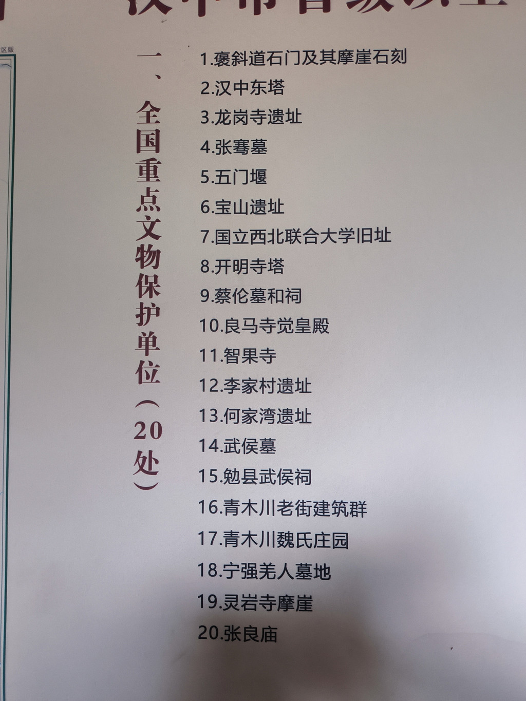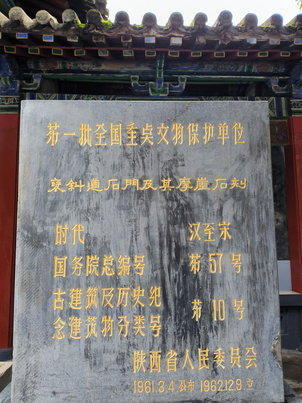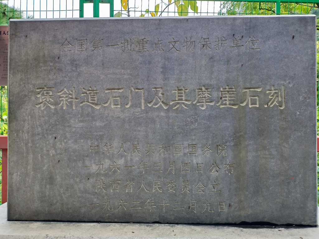 由于其交通地位的特殊性,过往的仕官商贾、文人墨客在饱览胜迹之余,记事咏物,抒怀为文,镌刻于石门内外的崖壁上,经年累月世代不绝,形成了蔚为壮观的石门摩崖石刻。在石门东西两壁及褒河两岸,已发现汉魏以来大量题咏和记事摩崖石刻近180方,前后时间长达1900多年,有古人督修栈道、修葺山河堰的记录,也有名人的即兴留题,按文体分有颂德、自警、记叙3大类,按书体论以隶为主,篆、行、楷、草、魏碑之书亦有,尤以汉魏13块最负盛名,世称“石门十三品”,为国内珍稀文物,故褒斜道、石门及摩崖石刻被列为首批国保单位(见下图)