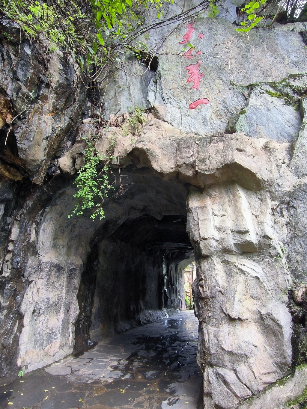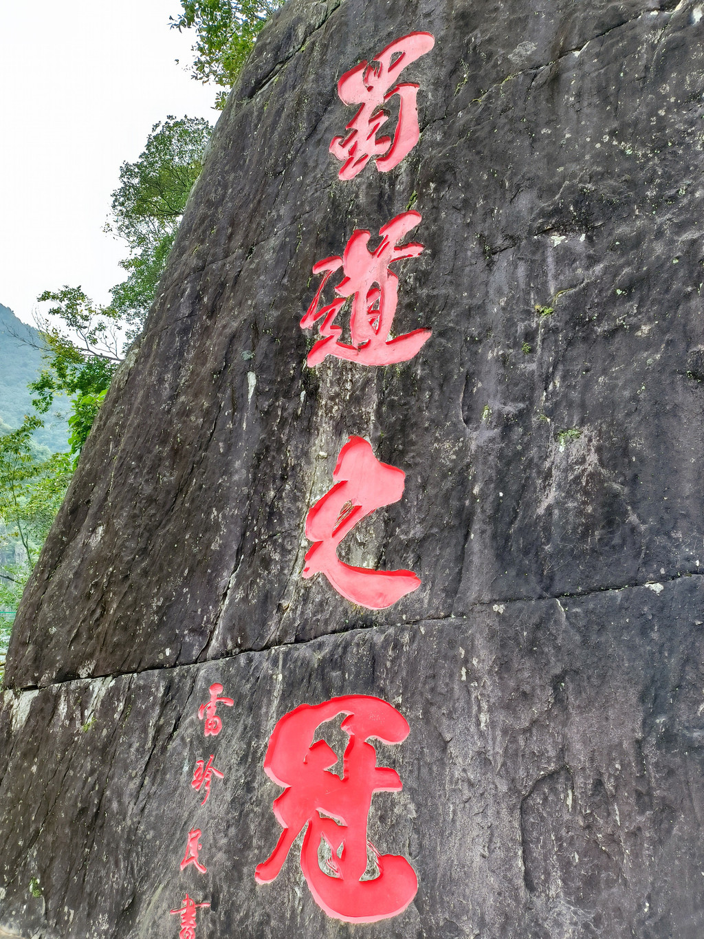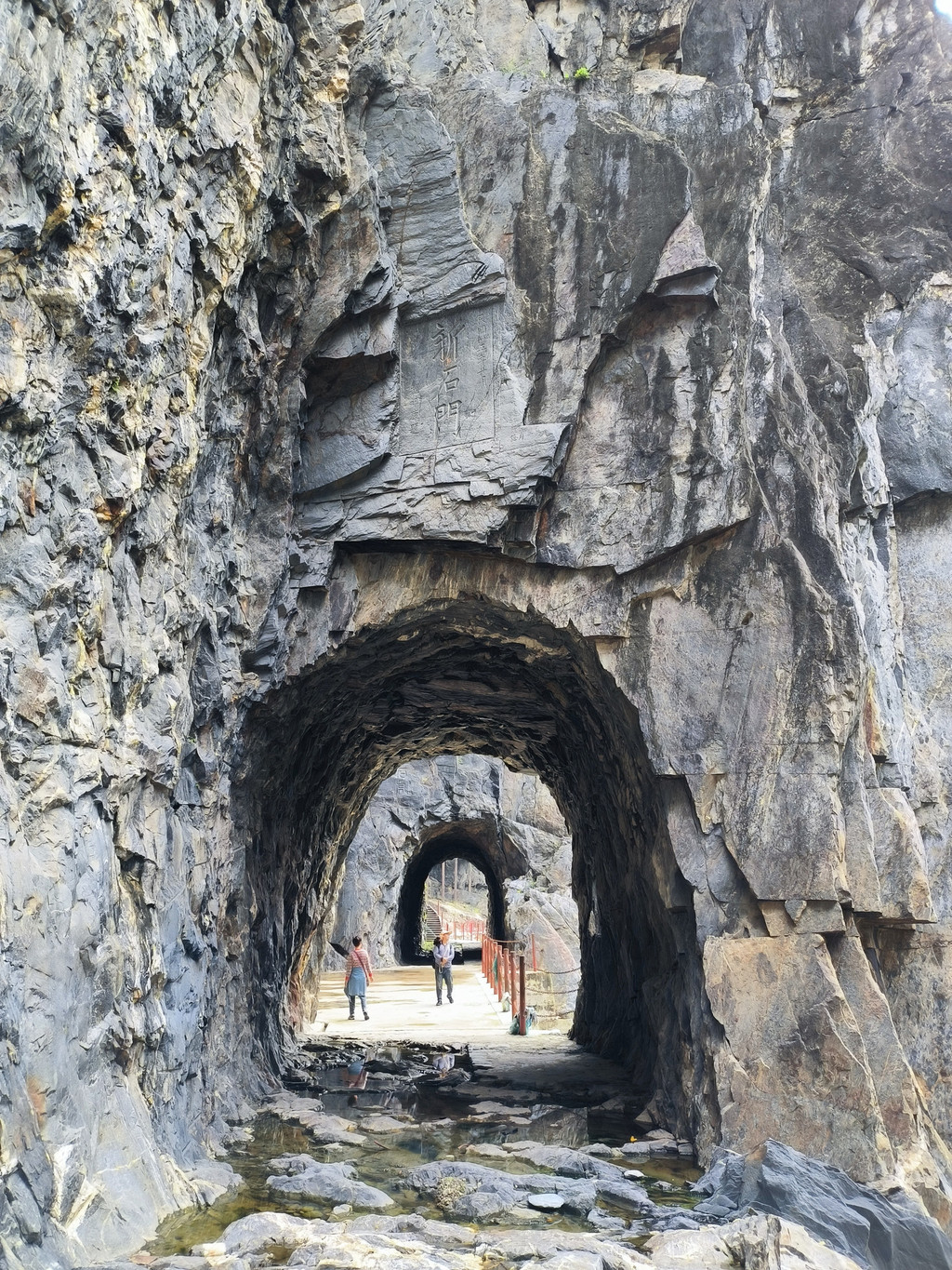 石门栈道景区位于汉中城北16公里处,坐102路公交可达,但从景区大门(见下图1)到翠屏桥还有很长一段路,我们首先看到的是刘邦群像雕塑(见下图2),左右分别是萧何、韩信,途中还可看到重达71吨的巨石—“浮浪玉盆”,石中凹陷如盆,原为汉代张良在河谷中发现,为“褒谷24景”之一(见下图3)。过翠屏桥走进东岸的石门栈道下段,这一段为古栈道原址(见下图4-6),路边还能看到山壁之上古代遗留的方形栈孔,可用于插入栈道横梁,如果仔细看可见栈孔下方的Y字沟槽,据说此设计具有排水功能,秦汉时科技并不发达,此孔开凿的如此平整方正令人不解(见下图7)。
