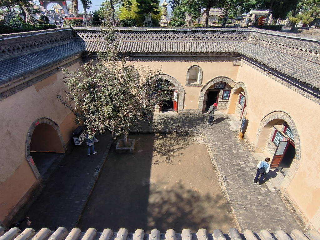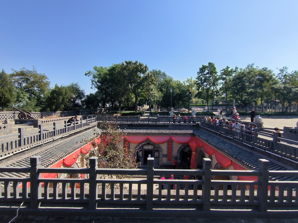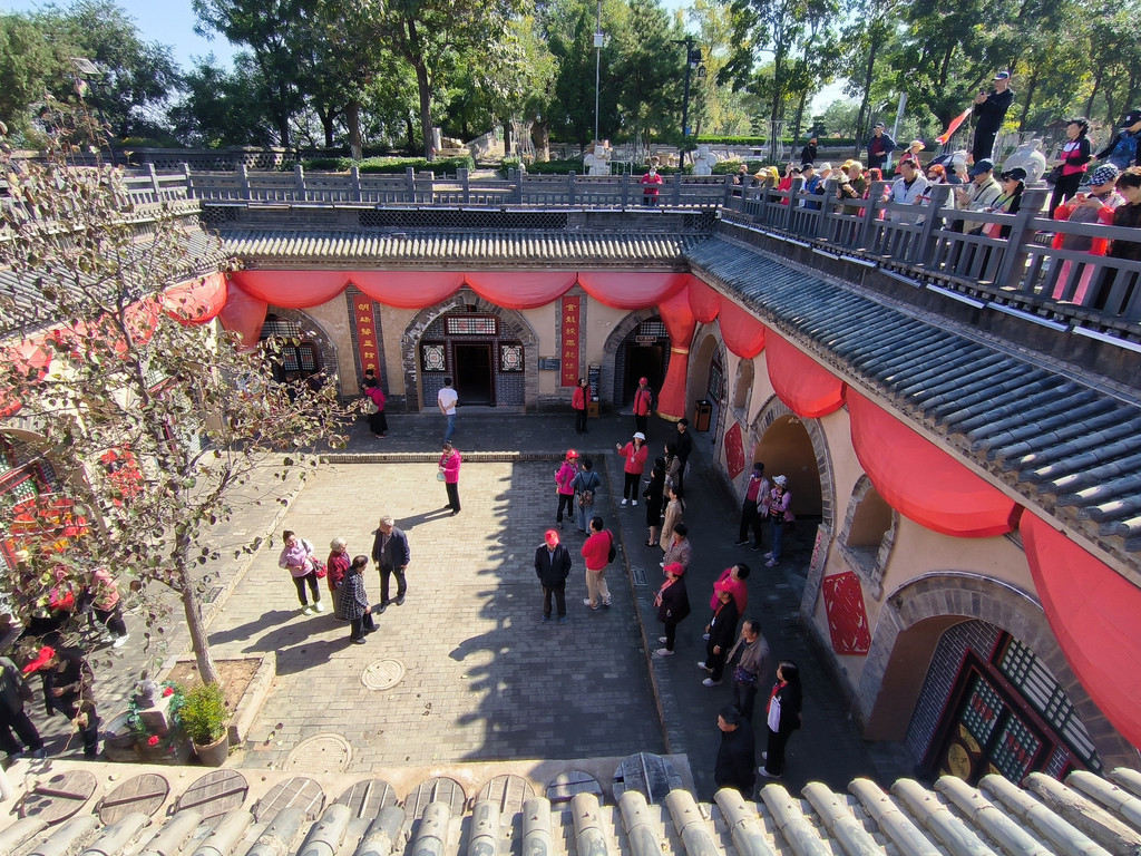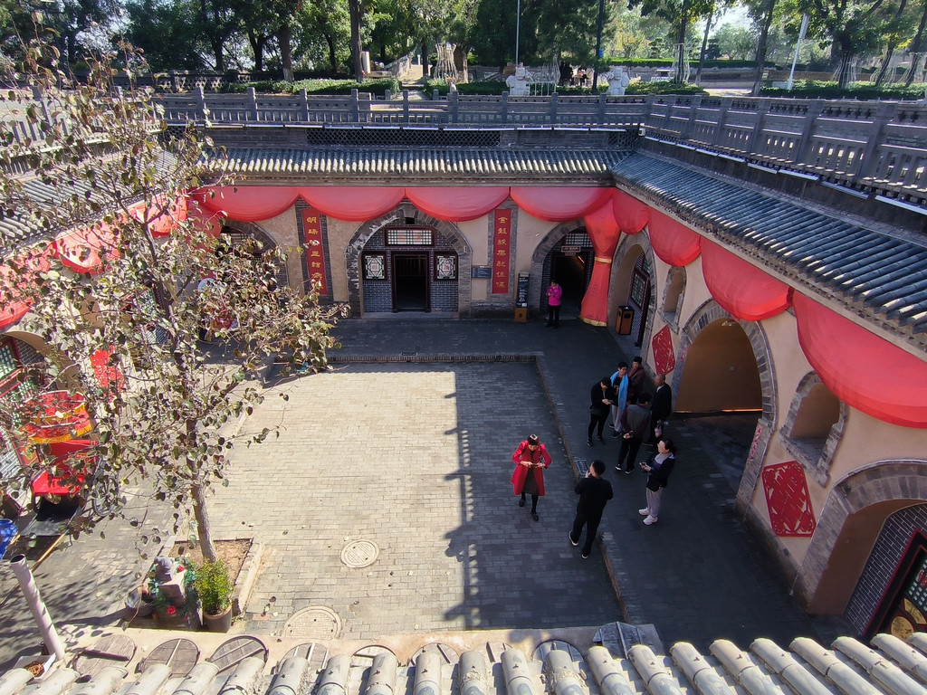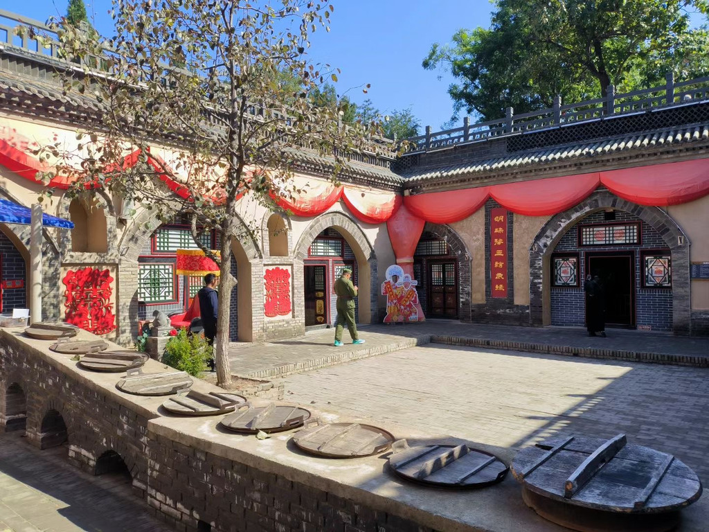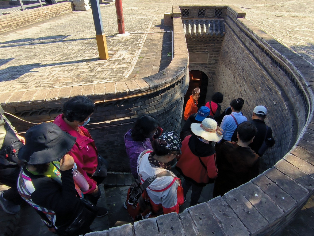 而张汴乡的北营村现存81座地坑院,大多建于清末民初,有100多年的历史,现在曲村和北营村的地坑院均已开发为文化旅游景区,我们去的是较近的北营村。北营地坑村景区距三门峡市区11公里,根据网上提供的交通方式,我们先从火车站坐19路公交到海关站,在此再转坐观光巴士2号线,但等了半小时也不见观光巴士来,只好打了一部网约车前往。北营村地坑院文化大观园占地80亩,建有游客服务中心、中心休闲广场等配套设施,主体由22座地坑院相互打通的地坑院组成,内设不同主题展示的民俗表演与非遗展示等,全方位向世人展示地坑院的历史演变及陕州地区人们的生活风貌与民俗技艺,把文化、民俗、特色旅游与休闲、观光、娱乐结合起来,探索出了一条文物保护与文化旅游开发并重的新路子。这种地下建筑过去我曾在电视上看过介绍,但亲眼所见还是第一次,