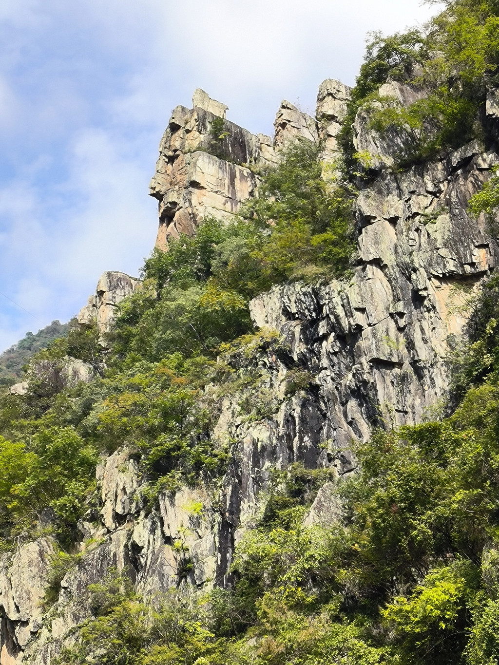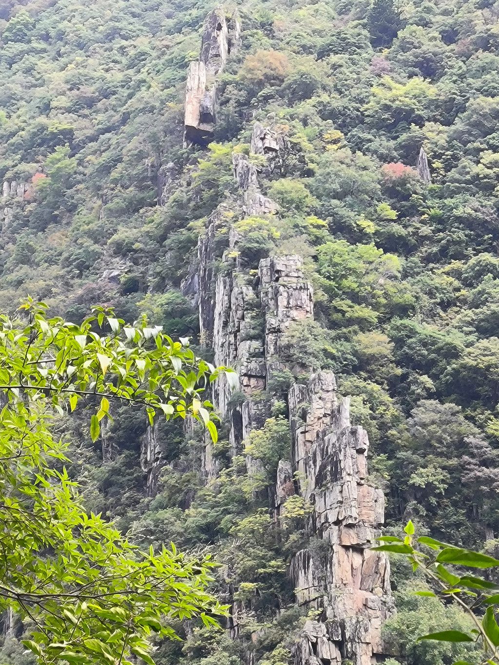 没想到该司机报价仅100元,仅为其他人的1/3。从三门峡市政府网站得知,甘山为国家森林公园,位于三门峡市陕州南部的窑店林场境内,距三门峡市区28公里,有玉翠峰、罗汉峰、聚仙峰、光武峰等84座山峰,其中最高峰甘露峰海拔 1884以米,相对高差800米,林区面积达12万亩,森林覆盖率达95%以上,植被为阔叶林与常绿阔叶林(见下图),春夏时节的甘山满眼望去都是绿,盛夏季节温度比市区温度低7度左右,景区分为森林游憩区、红叶观赏区、水上游乐区、蝴蝶谷景区4个部分, 主要景点有蝴蝶沟、铁瓦庙、祖师庙、钟楼、马武寨等。