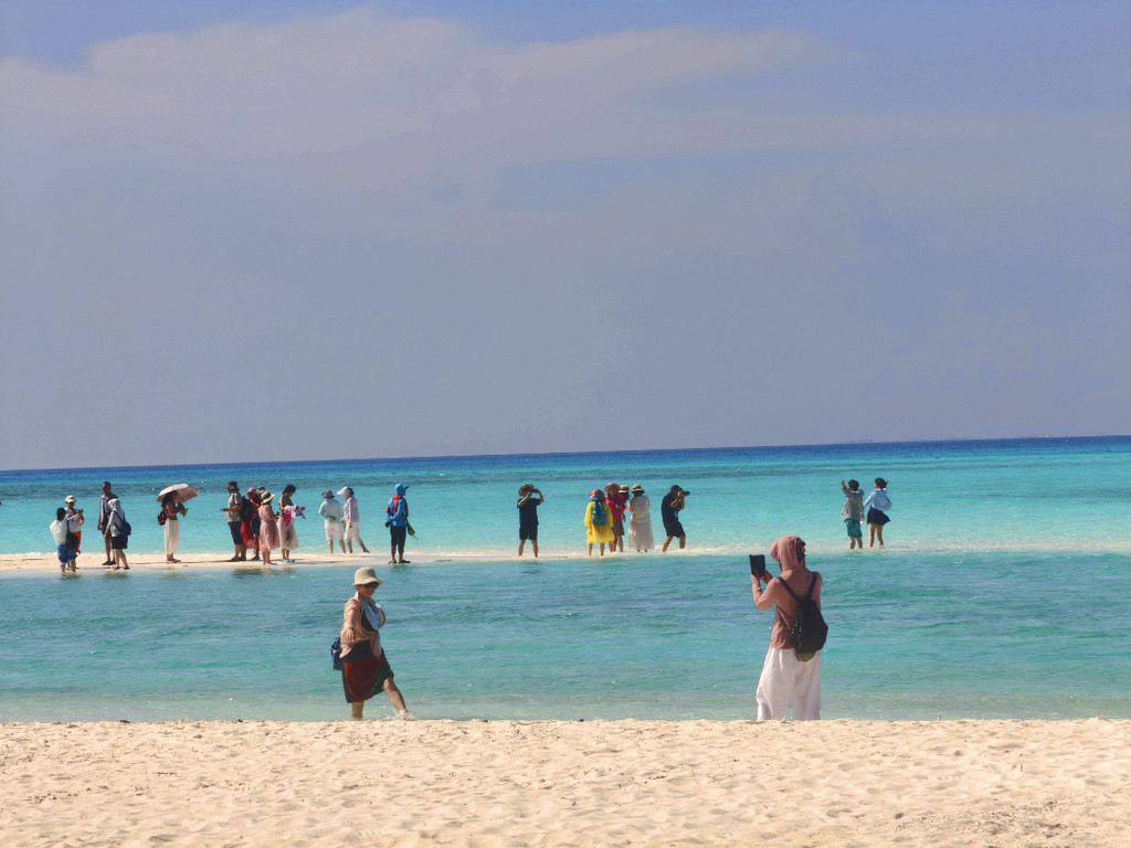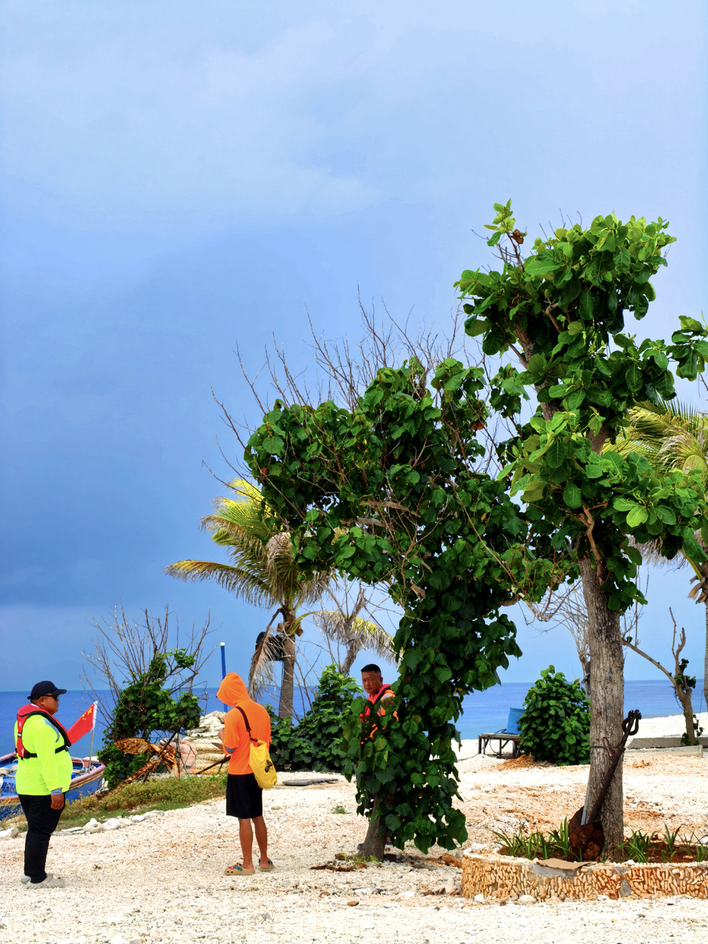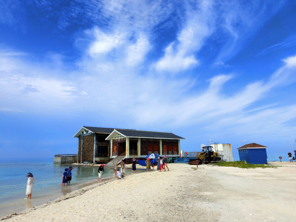 第三天,6月9日上午再次去了银屿岛,下午去鸭公岛,鸭公岛,位于中国西沙群岛的永乐环礁北部,在银屿仔西南500米、全富岛东3公里处,处于全富岛所在礁盘与银屿所在礁盘之间的“银屿门”的通路上,是一个完全由珊瑚礁堆积而成的微小岛,面积约0.01平方公里,岛中有一个随海潮涨落的小湖。由于鸭公岛上正在施工,所以停留时间只有十几分钟。返回邮轮时,天上开始下雨,远远的看到海上乌云密布,还看到十分罕见的龙吸水现象。