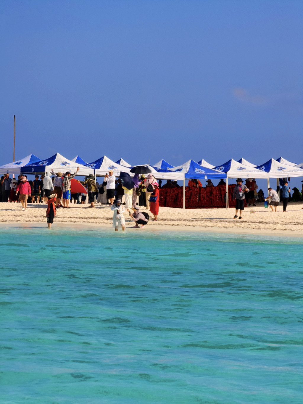 我们在岛上还举行了升旗仪式,活动加游览大概一个半小时,200多团员轮番往返,中午在邮轮上吃午餐,下午去银屿岛。