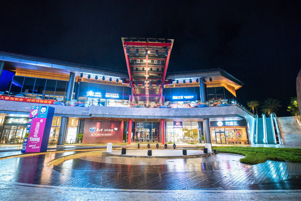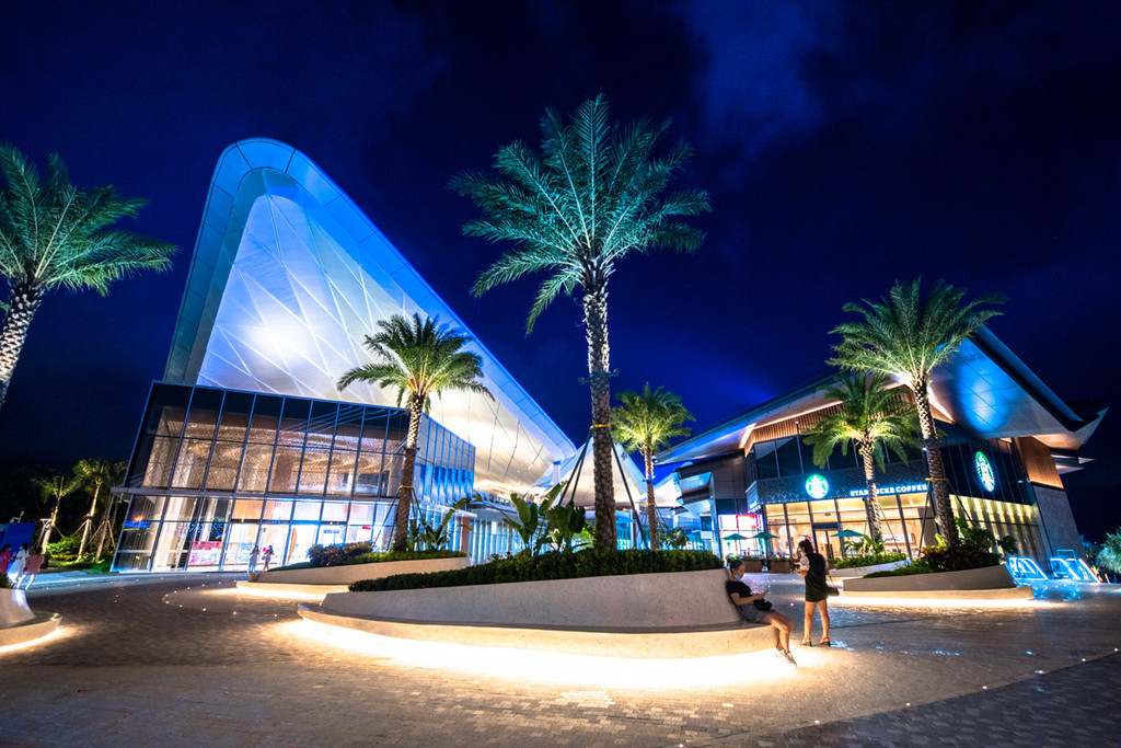 从正门步行入内,这里门口分别是国际品牌折扣店、椰林步行街、美食街、星巴克、电影院、亲子游乐园等分区,满足了当地及游客的娱乐、逛街、餐饮、购物等需求。以“四海一塔”为主题,海星广场为主入口,与海豚广场、海螺广场、海马广场、壹号灯塔广场相结合,走进广场,顿时就感觉到海滨度假风扑面而来。