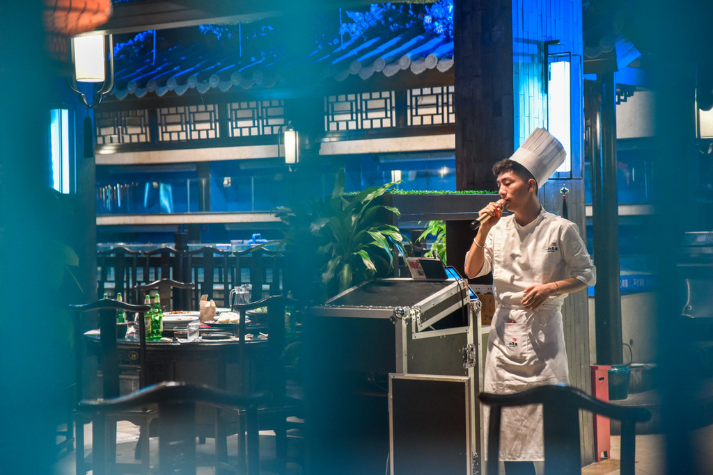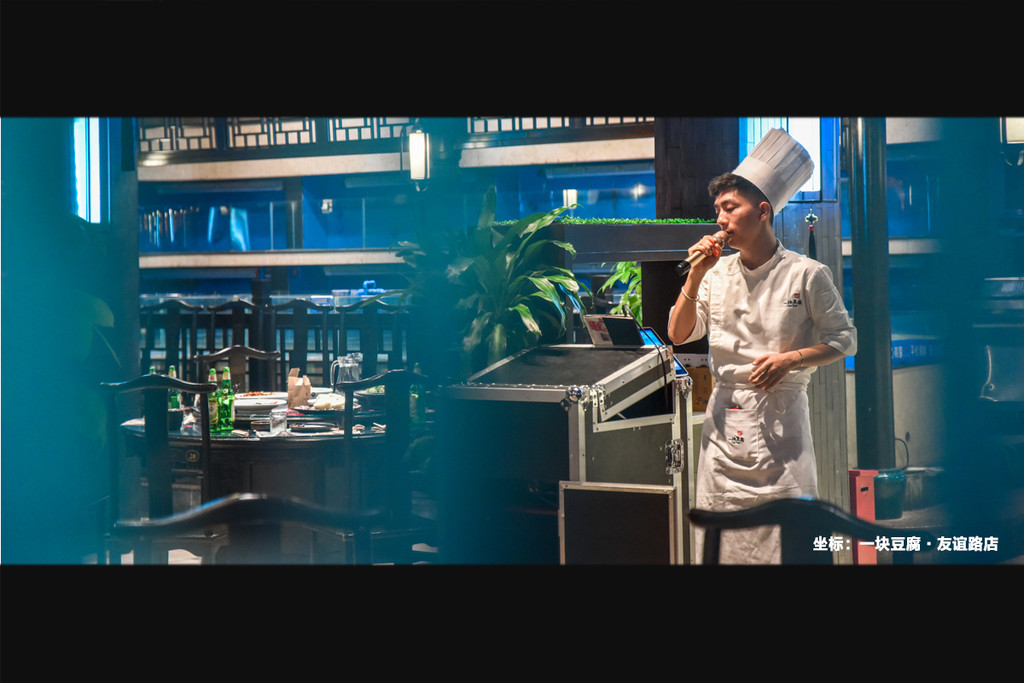 锦衣卫小哥哥是比较忙,但是这身行头很拉风。席间,听到有人唱歌,透过格窗一看,是厨师小哥哥!这饭吃的,氛围还是不错的。经理说,一会到19点半,还会有厨师现场制作豆腐冰激凌呢。我眼睛布灵布灵的想了半天,这可以啊,豆腐冰激凌,第一次听说过。