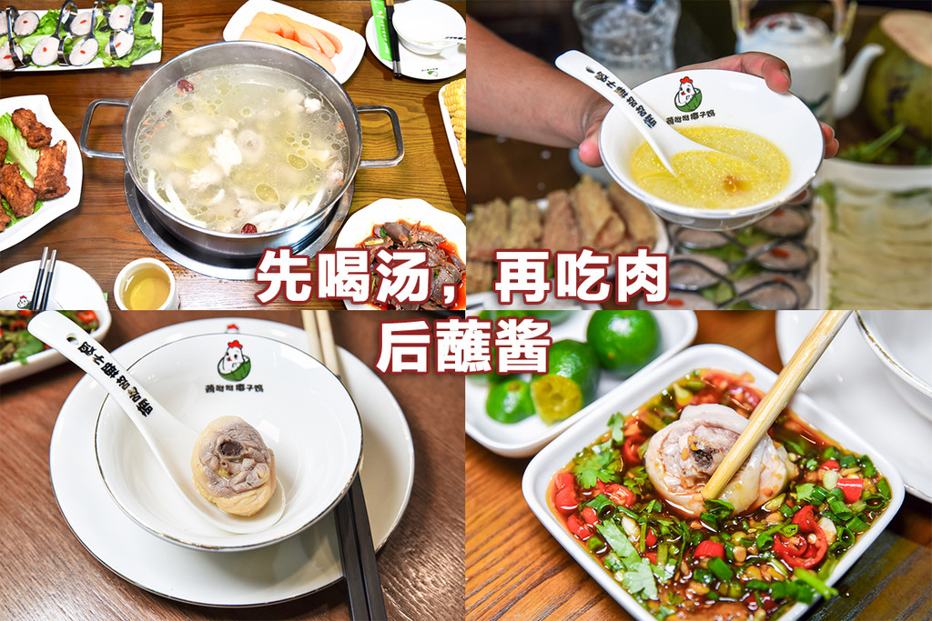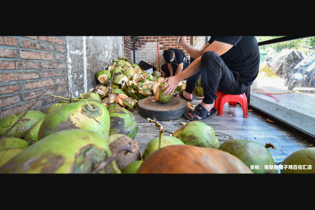没错,是跟着当地人去吃鸡!这是什么鸡,是海南人由来已久的“无鸡不成宴”的这只鸡!是文昌鸡?不是,文昌鸡虽然贵为海南四宝,但是原产于文昌。而海南人生活中更多喜欢的走地鸡、果地鸡!不过这只鸡吃法比较特殊,是用三个椰子炖的鸡,如今它也是家喻户晓的海南特色菜。