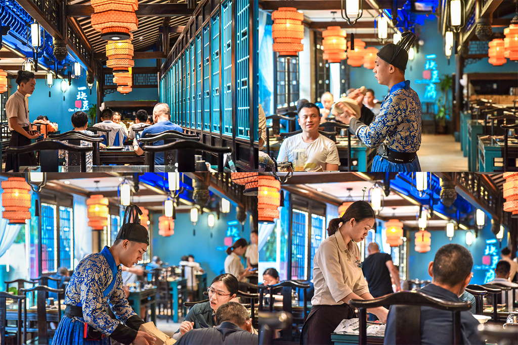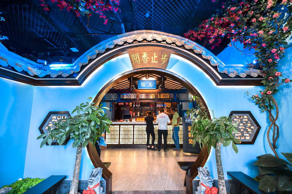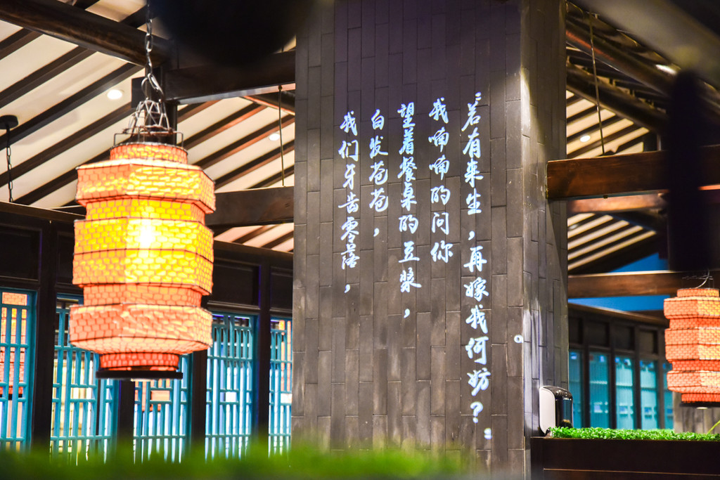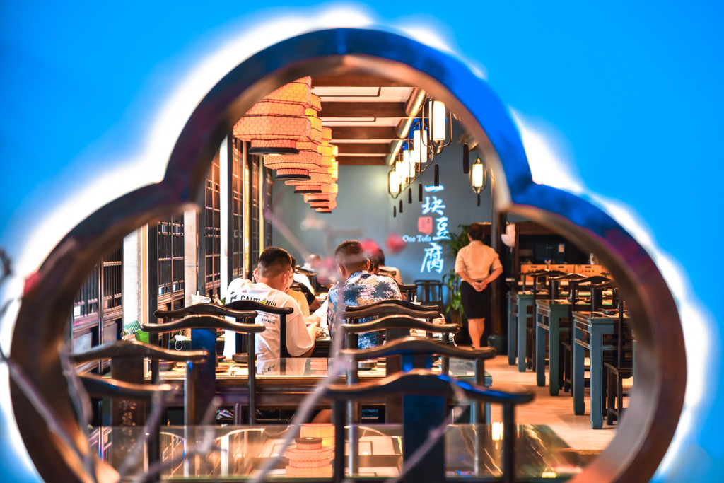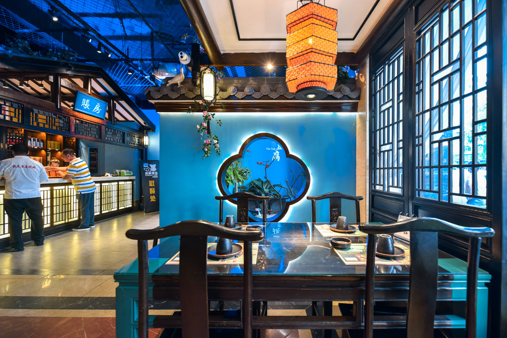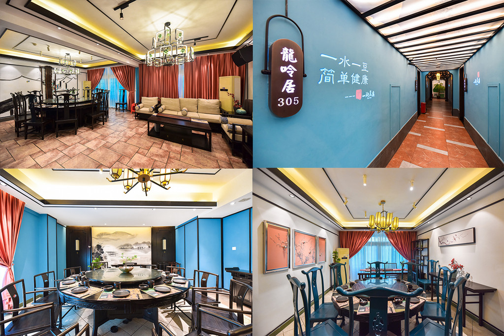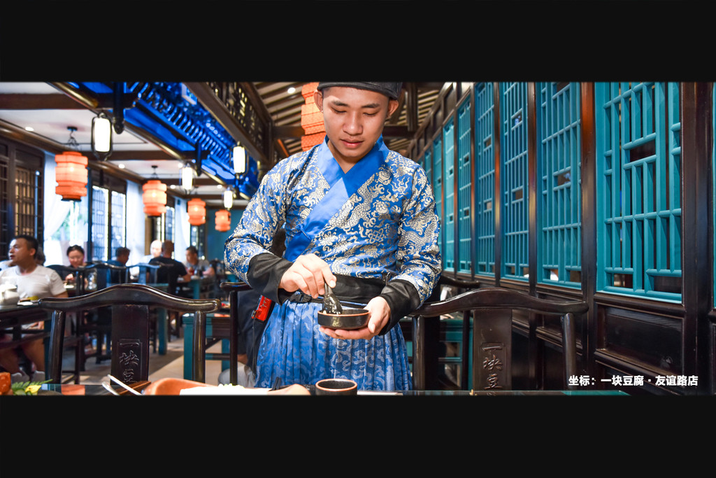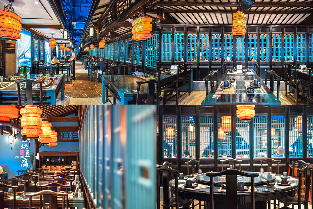 餐厅有四层,一楼大堂,以上包厢,包厢大小不一,还有适合聚餐唱K的功能。这风格,在我看到锦衣卫装束的服务员小哥哥,我就信了。这家豆腐不是一般的好吃,也绝对不只是一块豆腐这么简单。在南国三亚,装修如此别致考究的餐厅真心不多。以海蓝色为辅色调,突出海岛的主题。餐厅中式风格为主,主打独家手工石磨豆腐为主的菜式,大堂入口“闻香止步”令人生趣,账房、太师椅、屋檐、格窗、宫廷吊灯造景,凸显了餐厅特色。光线通透、空间宽敞、环境整洁、服务及时,大体还不错。