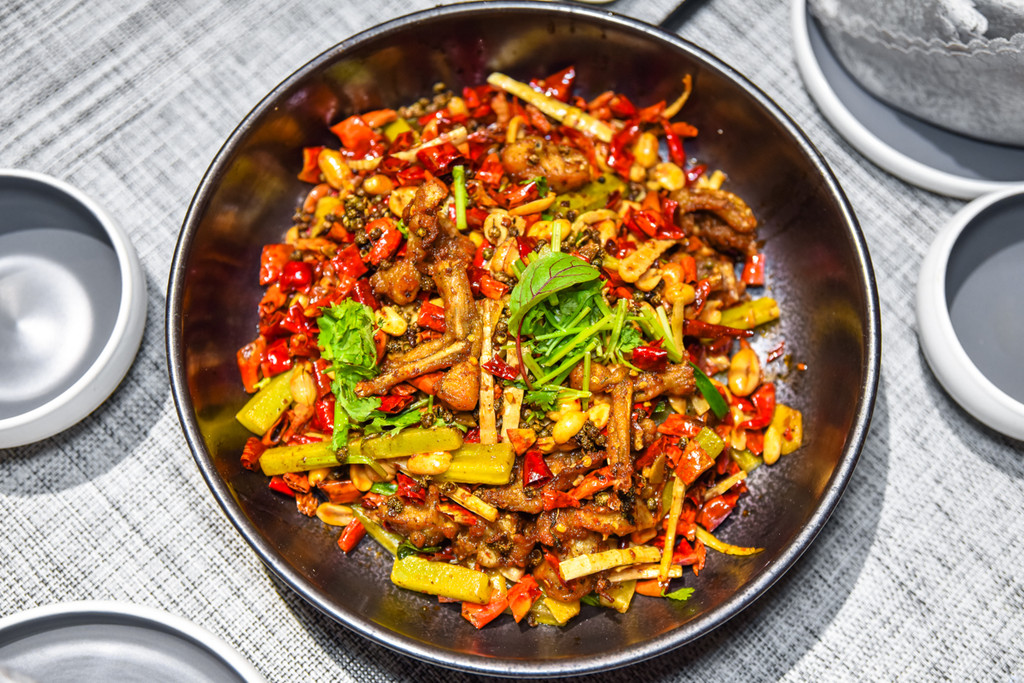 和很多椰子鸡店不同的,除了口味比别家好,还有是专注于椰子鸡这道海南菜文化的挖掘。从食材根本、口味层面去提炼、创新。可以说,能把一只老椰子,吃出3种口感的,全三亚可能只有萌哒哒了。为了满足不同味蕾的需求,清甜的鸡汤过后,无辣不欢的你,可能觉得食不知味,没事。这几道麻辣菜品,也是拿到了很多食客的满分好评。