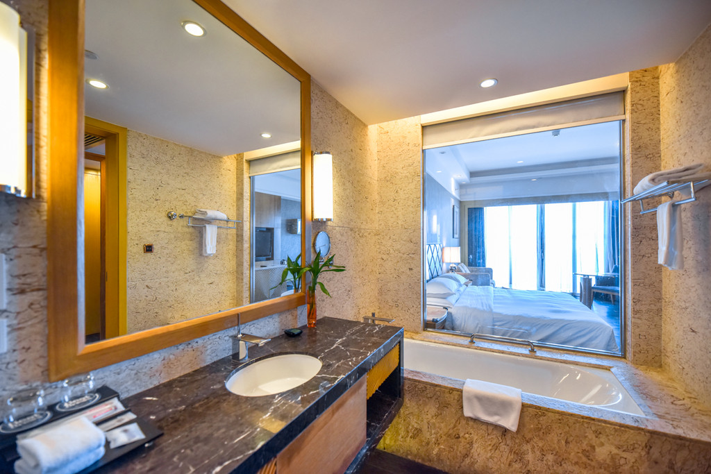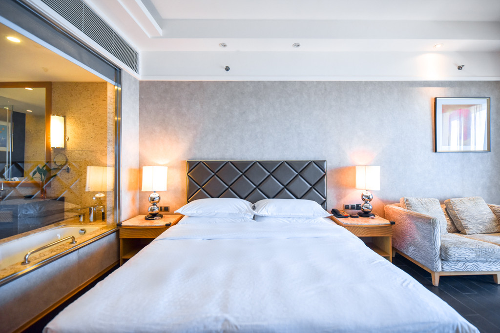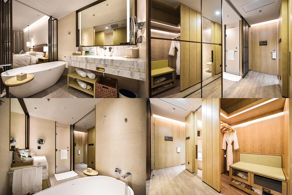 如今的客房升级,全新打造,很鲜明的对比,让我惊喜。从客房格局、灯光设置、床品打造、风格变化,再到一些人性化的细节、设施的改善,已经浑然认不出了。酒店对这次升级,也是花费甚多。德国百年卫浴品牌高仪的全套淋浴卫浴,再到全套的佰草集洗护用品,最后到人性化设施的改动,比如推拉玻璃移门,节省空间,增加采光,又保留私密。