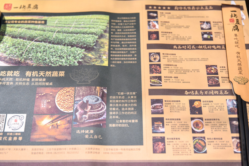食在三亚当地,除了地方菜、大餐,还有创意餐厅特色菜。来三亚旅行度假,跟着当地人去这些三亚美食清单上的小众餐厅,也会有不错的味蕾体验。为了接下来三亚美食打牙祭之旅,所以先养生一下,吃点素的!位于友谊路的一块豆腐,紧邻酒店,仅500米之远;此前就听闻这家店,这次还挺有缘分,说吃就能吃到。另外在迎宾路天际大厦、大东海1号港湾城四楼都有分店。