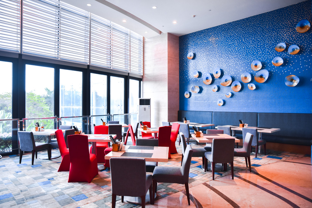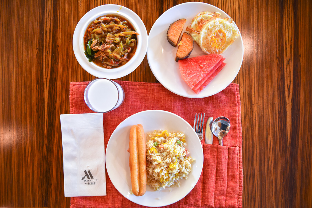位于主楼一楼的万豪咖啡厅,是全日餐厅。早间,是每一个住客都能获得能量满满早餐的地方。种类多,食材新鲜,服务及时,环境极好。最晚到11点,你都可以在这尽情享用。“让你既能睡懒觉,又能美美的吃饱”的全日制早餐,早餐可不仅仅是早上而已哦!万豪咖啡厅日常的自助早餐时间为6:30-11:00,而11:00之后直到21:00,仍然可选择“全日制早餐”:精选3套特色美式、中式及健康早餐搭配不同饮品,你可任选其一免费享用。