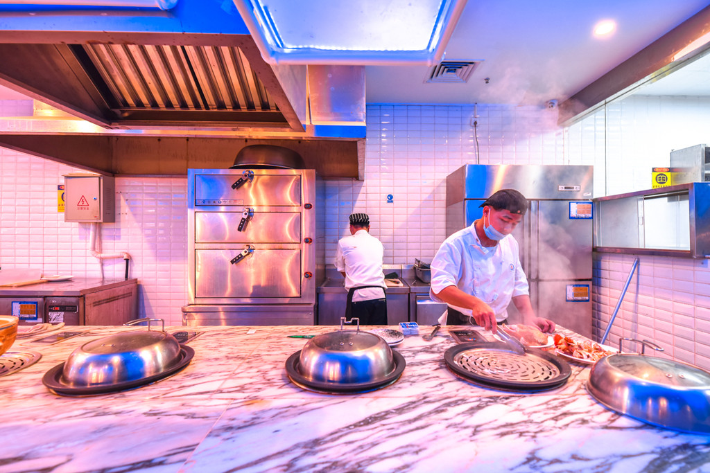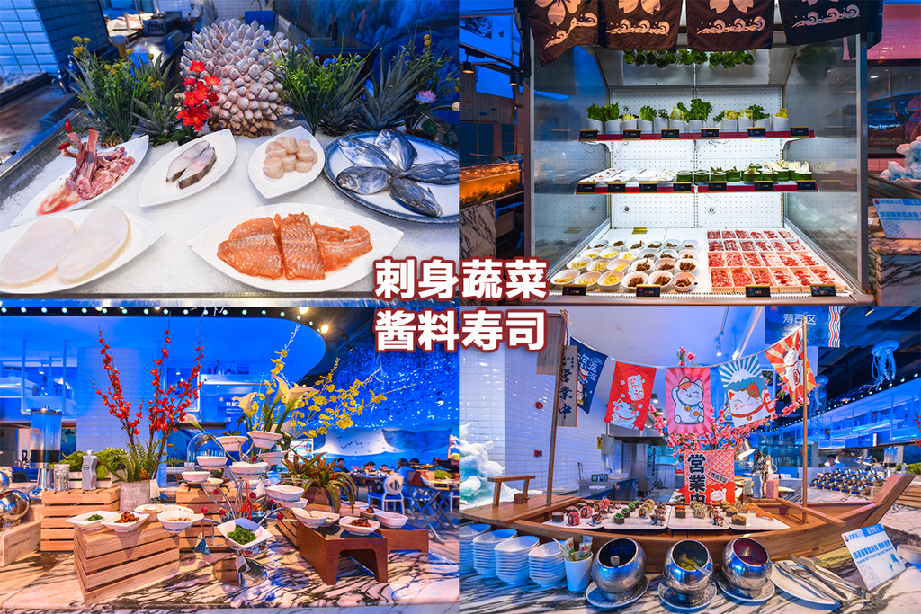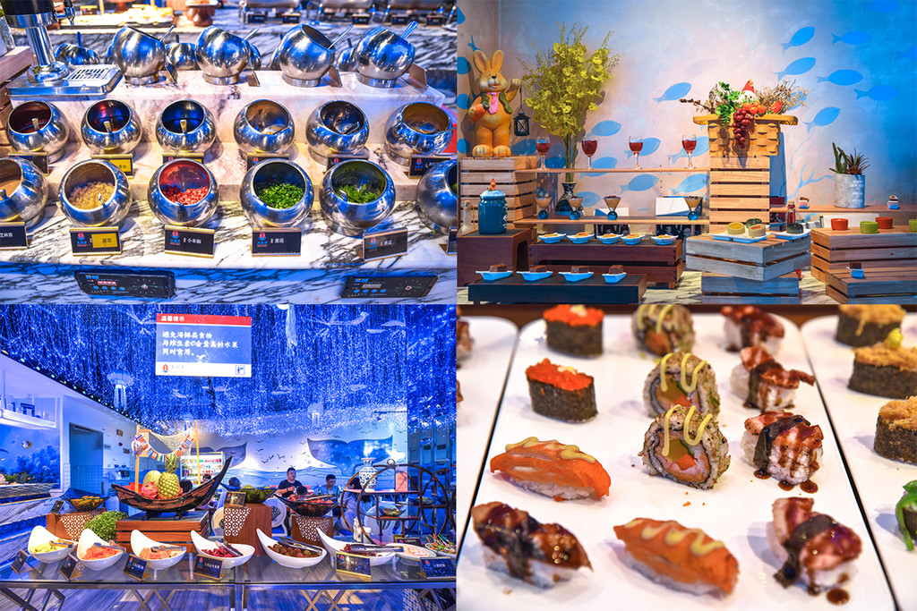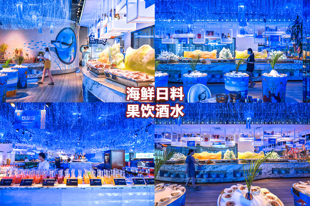 精选当日本地新鲜食材,食材原汁原味。除了糟粕醋火锅,还有特色锅底,清淡麻辣,任其所选。不喜欢清蒸白灼的朋友,必须一试,一吃保准停不下来。餐间有歌手驻唱,还有抽奖互动。餐厅分为现捞区、冰雕寿司日料自选区、甜品区、酒水自助区、烧烤扒档、冷菜区、热菜以及蒸煮区。上百种菜品,琳琅满目,香气诱人。