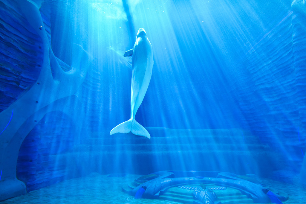 最神秘的就是被誉为海洋精灵的白鲸,每天也会上演人鲸水下互动,十分暖心羡慕的演绎。儿童可以在海星池触摸这些五彩斑斓的海底生物。。如果你上午前往,还可以见到海底喂食互动,还有好多可以和大白鲸、巨齿鲨公仔合影!