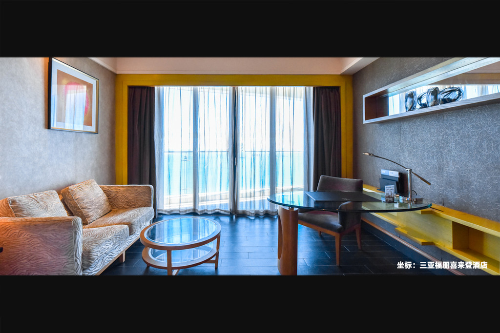 酒店前台设在二楼,自驾住客可直接停泊二楼露台。三亚度假酒店14点延迟退房很常见,但在这个时期,福朋前台依然忙碌不断,看来入住率还是很不错。入住25F高层的180海景豪华大床房,视野极佳,采光极好,商旅人士必选房型。酒店开业至今7年之久,客房状态看起来,还是不错,可见没少花维护保养成本。客房以黑色商务风为主,特别适合商旅人士夜间工作;我也尤为喜欢这种氛围,特别利于思考;布置以极简、实用为主,40m?的空间,显得有50~60那么大。沙发茶几、办公桌、行李架,仅此三样家具,于商务人士而言,足够。浴室干湿分离,有淋浴及浴缸,标准版格局;沐浴用品也都齐备。