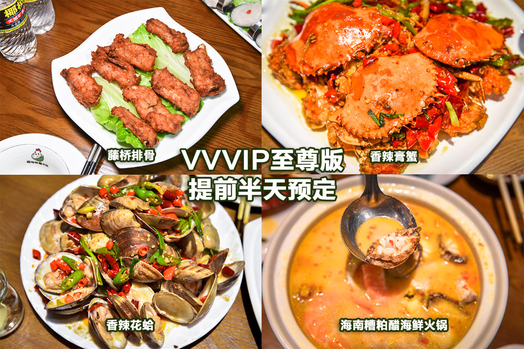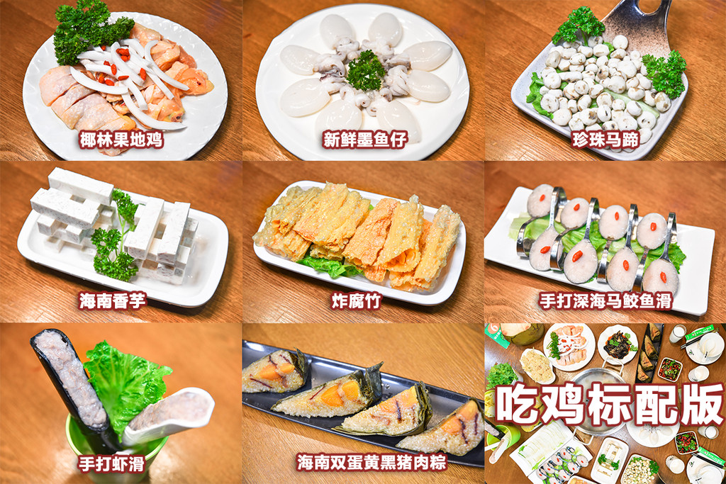 当然啦,手打深海马鲛鱼滑、虾滑、野生竹笙(椰子鸡汤必备)、海南香芋、珍珠马蹄等必点食材,都是吃鸡标配版!热菜冷菜小食方面,海南黑猪肉粽、香煎马鲛鱼、藤桥排骨,这些也都是很不错的三亚特色菜!