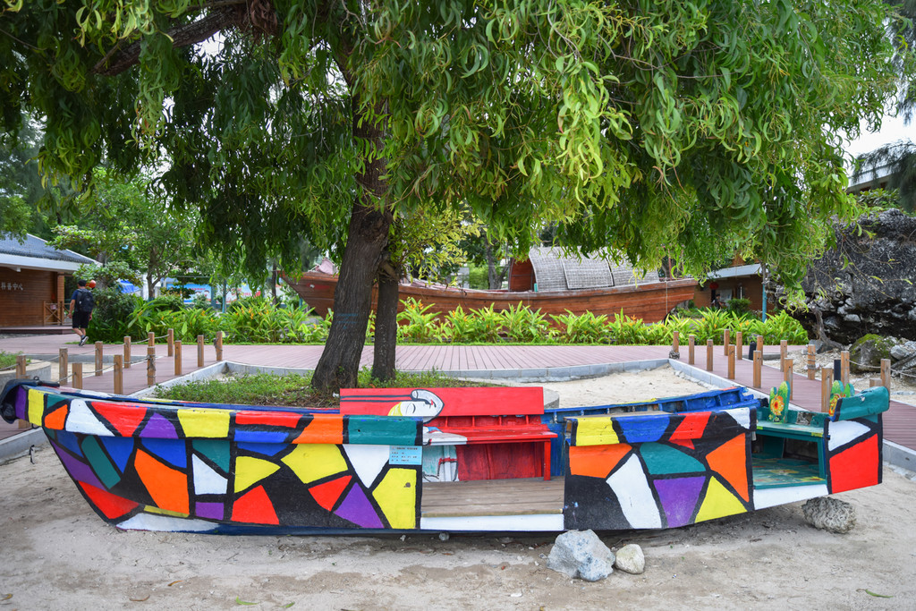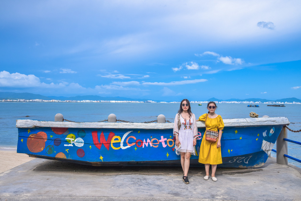 置身小巷,处处都可以看到五彩斑斓的贝壳沙画、雕塑、船木艺术品,非常有视觉冲击力,且无违和感。堪比 厦门 鼓浪屿 ,那种文艺气息。不过最大的感触却是,很多人慕名天涯海角、海枯石烂的地质变化,而来到 三亚 。其实在西岛,也可以感受到什么叫一脉相承。西岛不远处,就是东岛。峰峦变岛屿,平地卷波涛。与 三亚 的大陆架原本紧紧相连在一起的西岛,历经沧桑变迁,几经浮沉才变成了这么一个“孤悬海外、四无毗连”的海岛。东岛和西岛是一对脉脉相连的峰峦海岛。