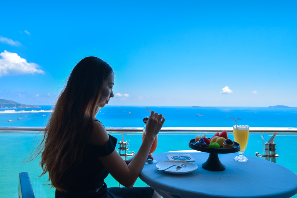 三亚湾的酒店,我睡过几家比较有特色的,诸如康年、铂尔曼等等。单就海景下午茶,福朋最佳。此外同一楼层,还有海景露台,这里适合年轻人轰趴、生日派对、小型鸡尾酒会。还是非常不错。