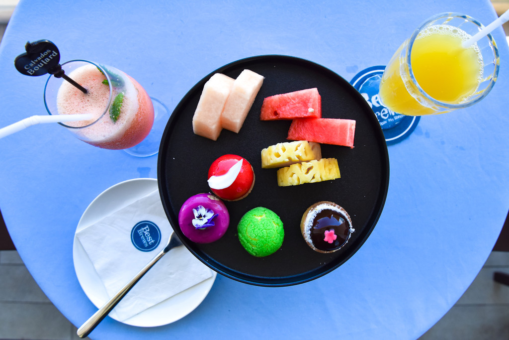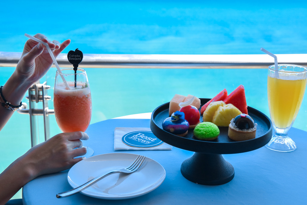 之前提到过Best Brews这个福朋特有的品牌计划,在这展现的淋漓尽致。从白天到深夜,从白领商务人士,到情侣闺蜜亲子人群,都能有所收获。海景下午茶、果茶、咖啡或是精酿啤酒,无不挑逗着每一个客人的味觉、视觉、听觉。下午13~15点,太阳还是略大,比较晒,过了这个时间段,不仅光线好,而且很舒适。闲来无事,P一个高级版的“照骗”。