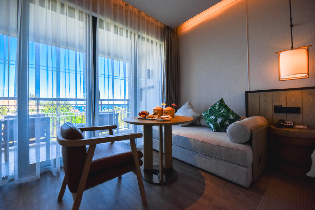 我想这就是设计理念与酒店故事之间的默契吧,跨越了15年之久。依然以人为本,在为住客提升体验度的同时,极尽一些感官上的共鸣。就在我打开阳台移门之时,智能触控的空调开关,成功引起了我的注意。在3年前,我入住雅高瑞士度假酒店的时候,他们这一项智能/环保的技术已经用了好多年。而此时的三亚很多度假酒店都不具备,而随着亚龙湾万豪的全新升级,引用了这一项技术,还是蛮惊讶。