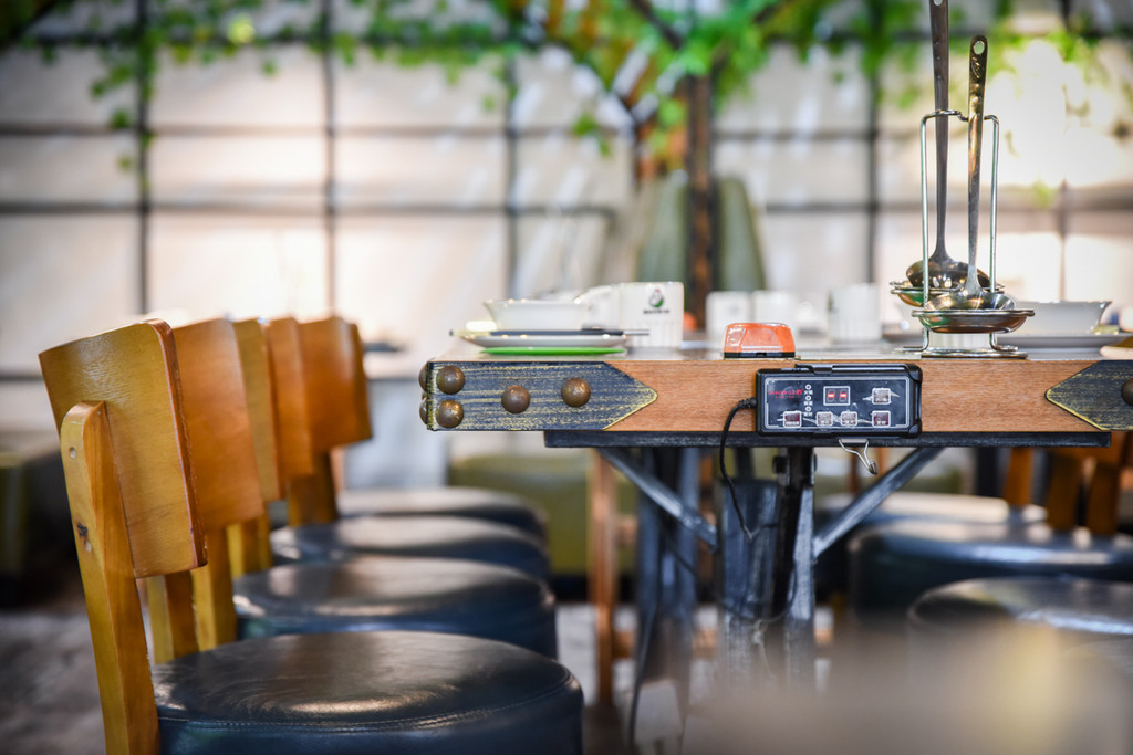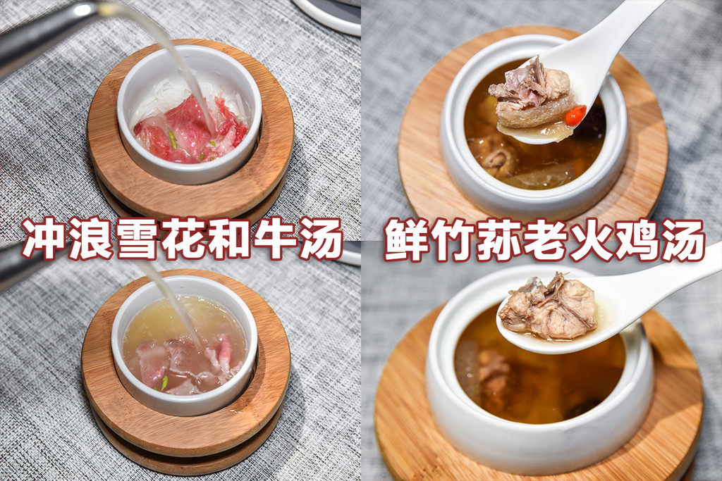 汤底导入甘甜醇厚的老椰子水煮开,新鲜椰林果地鸡入锅,3分钟准时起锅,口感不清淡,汤底不甜,而是椰香鲜美。网红椰子鸡自助配调味料必须来一套,蘸汁更美味。喜甜、喜辣、喜蒜香味的,都可以自取。