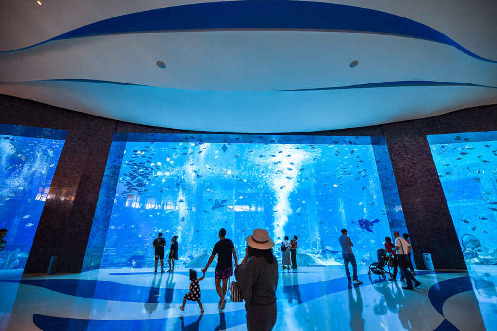 作为全世界最梦幻、极奢的酒店,亚特兰蒂斯在环太平洋地区,开设了第一家酒店,它就是三亚亚特兰蒂斯。神秘的海洋世界,是每一个人心中的梦幻向往。失落的空间水族馆注有1.35万吨天然海水的大使环礁湖,拥有逾280种 淡水 和海水动物。你可以在酒店公共区域免费驻足观看,巨大玻璃幕墙后的海底世界,也可以购票进入近距离观赏到鲨鱼、鳐鱼、水母、倒吊鱼、海鳝和巨骨舌鱼等逾280种生物,此外你还可以预定浮潜及深潜项目,零距离与异域海洋生物共舞。大堂外侧巨型玻璃幕墙广场,有个彩蛋——形如鳐鱼的穹顶,线条感很棒。