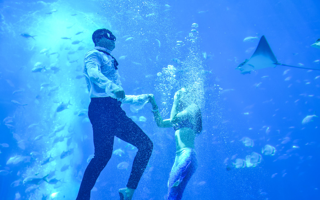 神秘的海洋世界,是每一个人心中的梦幻向往。失落的空间水族馆注有1.35万吨天然海水的大使环礁湖,拥有逾280种 淡水 和海水动物。你可以在酒店公共区域免费驻足观看,巨大玻璃幕墙后的海底世界,也可以购票进入近距离观赏到鲨鱼、鳐鱼、水母、倒吊鱼、海鳝和巨骨舌鱼等逾280种生物,此外你还可以预定浮潜及深潜项目,零距离与异域海洋生物共舞。大堂外侧巨型玻璃幕墙广场,有个彩蛋——形如鳐鱼的穹顶,线条感很棒。