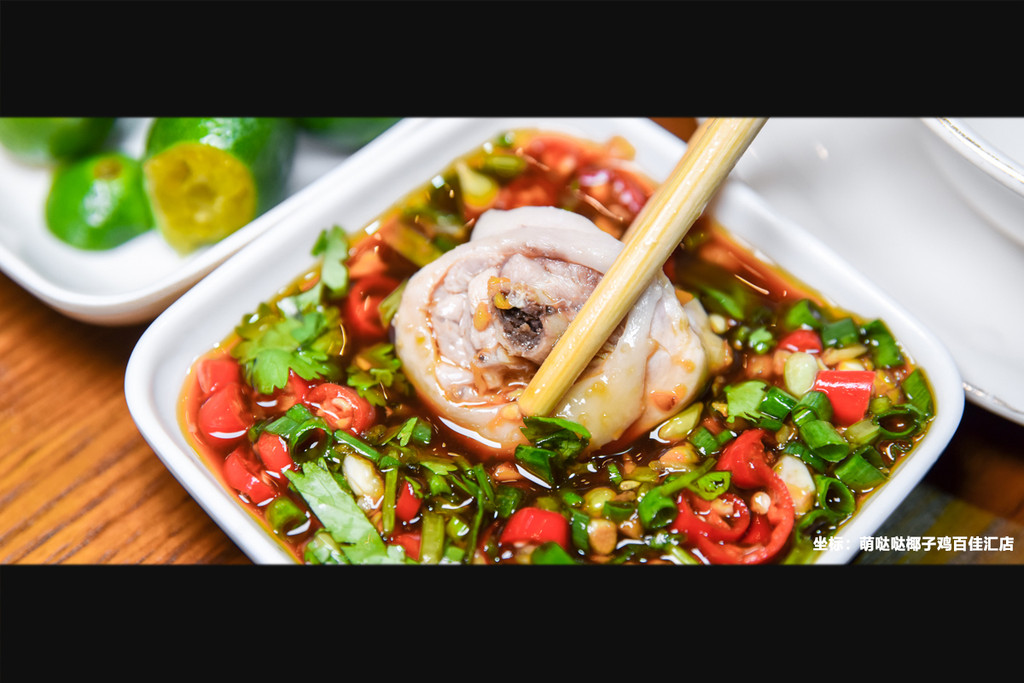 公鸡茶壶,公鸡碗!对东南亚,尤其是马来西亚餐饮文化了解多的人,一定知道这代表什么!在使用前后一共倒入三只椰子汁烹煮,再辅以蔬菜涮烫。我去过好多家椰子鸡餐厅,但是平心而论,情人桥边的萌哒哒椰子鸡百佳汇店,是我吃过印象最深刻的。