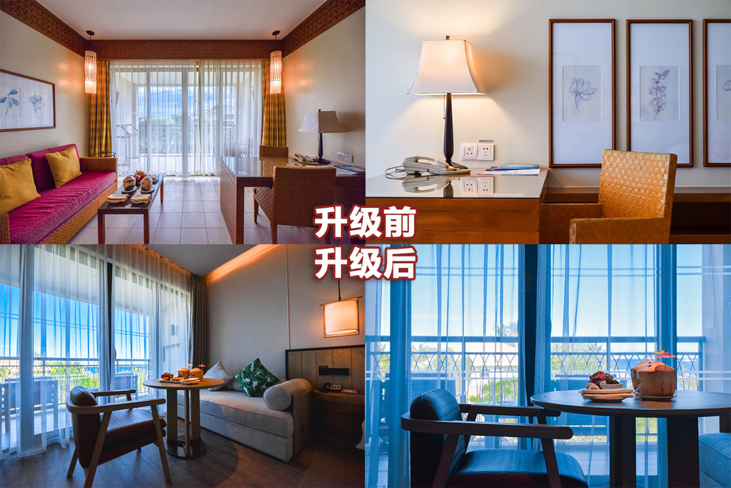 酒店2020全面迎来蜕变。主要体现在酒店风格、设计元素、客房布局等方面。去年我所入住的房型,很有年代感,就像很多国外海岛度假酒店一样,不过却很安静、舒适。不过见过新翼房型后,我瞬间喜新厌旧了。还记得去年——藤编椅、实木办公桌、简约的装饰画、温馨的灯光布置,让人静谧。
