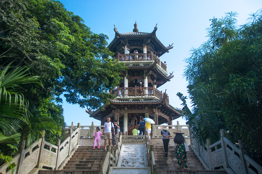 浙江普陀山的南海观音大佛,高33米左右,而三亚的南山南海观音,比它高出3倍有余,达到了108米。