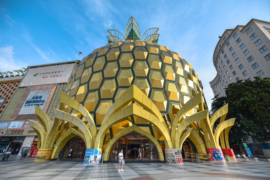 一期建筑整体采用世界知名设计公司打造的连续空间曲面钢结构,如同一朵娇艳的“海棠花”;盛开在蔚蓝海岸线。这朵点亮国家海岸的海棠花,是三亚新地标、海南新印象。三亚免税店主要经营国际一流品牌的香水、化妆品、首饰、名表、皮具、箱包、太阳镜、旅行用品、中国及海南特产等十个大类,近百个国际知名品牌的上万种商品。其中GUCCI、Tiffany、阿玛尼、万宝龙等品牌都是首次在中国设立免税品牌。