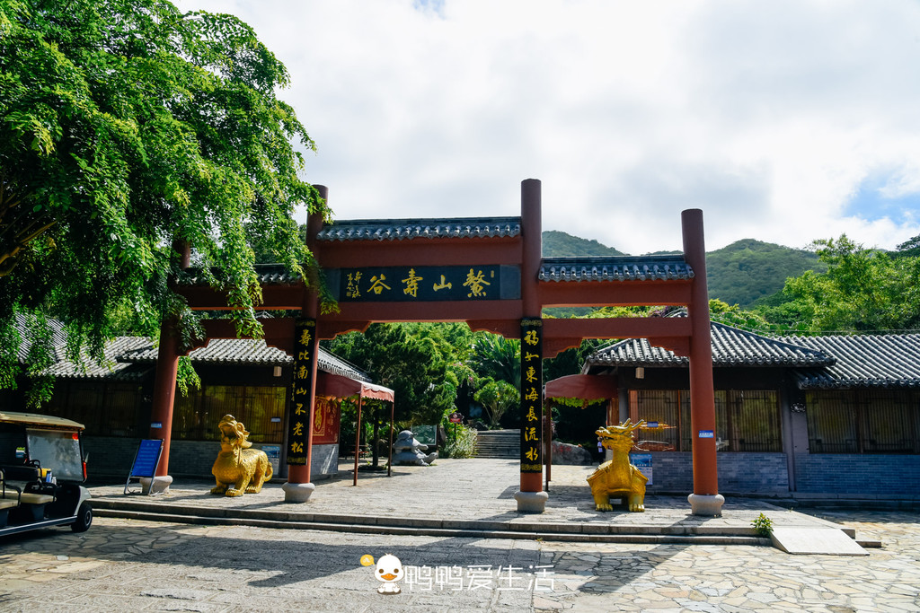 电瓶车线路:不二法门→海上观音圣像→鳌山寿谷(爬山景点,太热便没下车)→三十三观音堂→南山寺→梵钟苑→不二法门(现在部分室内展馆暂未开放)