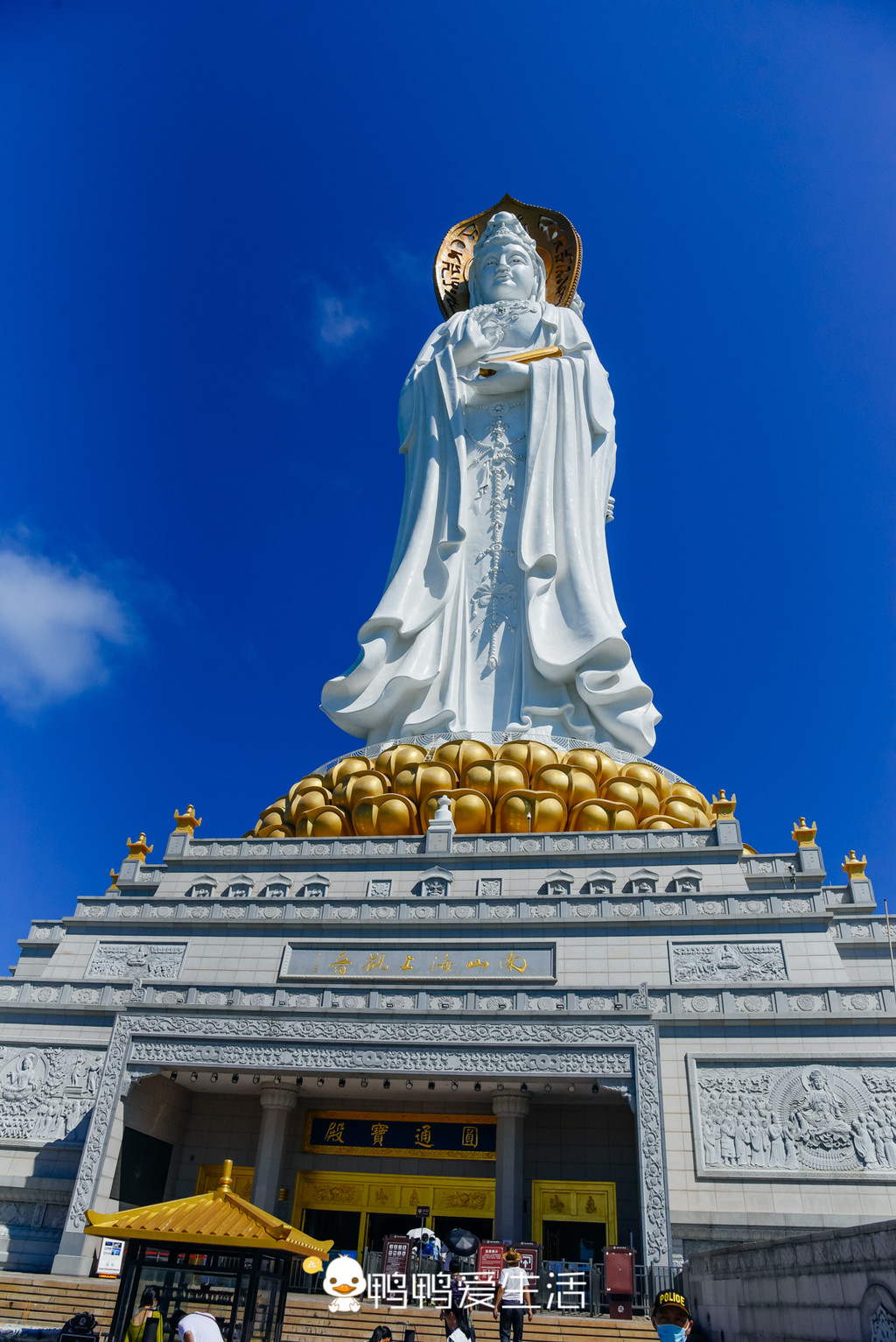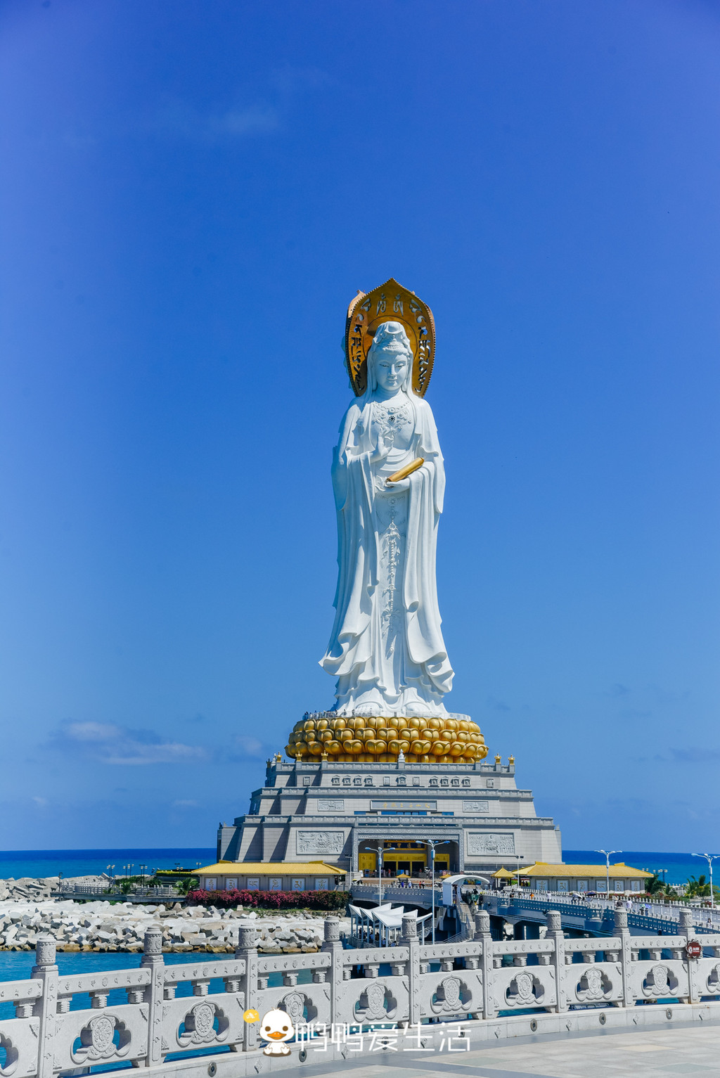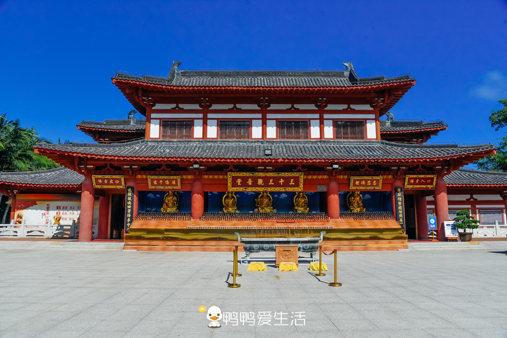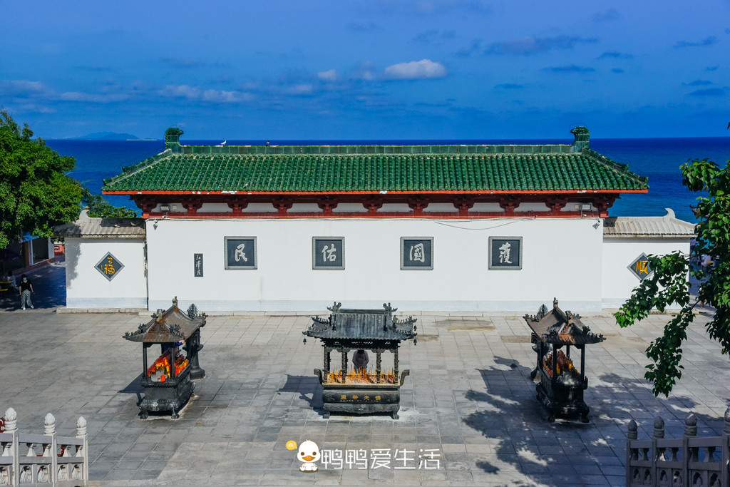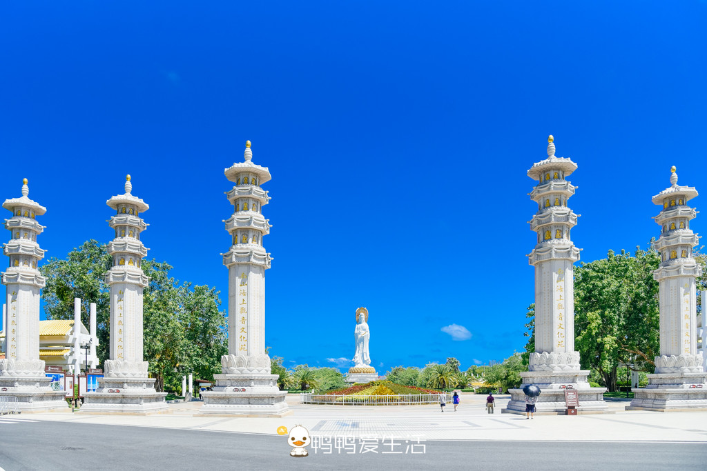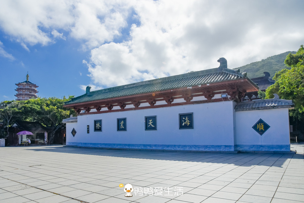 在寺庙前面“海天叶林”的大照壁前有个的观景台,可以从这里清楚的看到南海观音的三面一体,还可以看到无敌的海景,美不胜收。