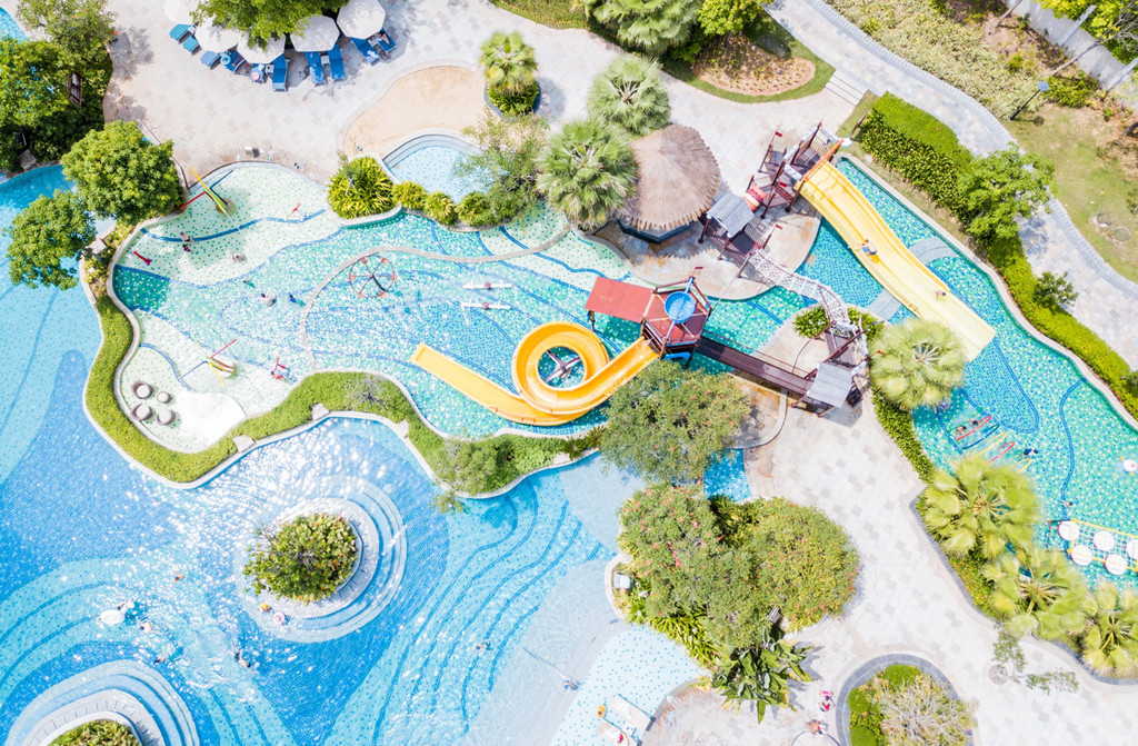 酒店一楼各种亲子,情侣设备,好几个泳池和还可以玩皮划艇,随处可以看到服务人员热情跟我打招呼,询问是否需要服务,