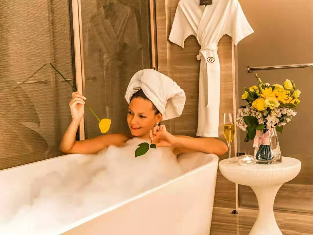 下午在海边拍照的时候服务人员特意打电话询问是否晚点需要准备沐浴布置,真的太贴心了吧,住了这么多酒店还是一次被打电话问需不需要特殊布置的,真的是好感度飙升。回来直接热水放好,还有一束鲜花,细节配置和官图一摸一样,晚上回来玫瑰花浴里泡个澡,让自己慵懒的躺在铺满玫瑰的热水中洗去一天的疲惫,真的不要太舒服~